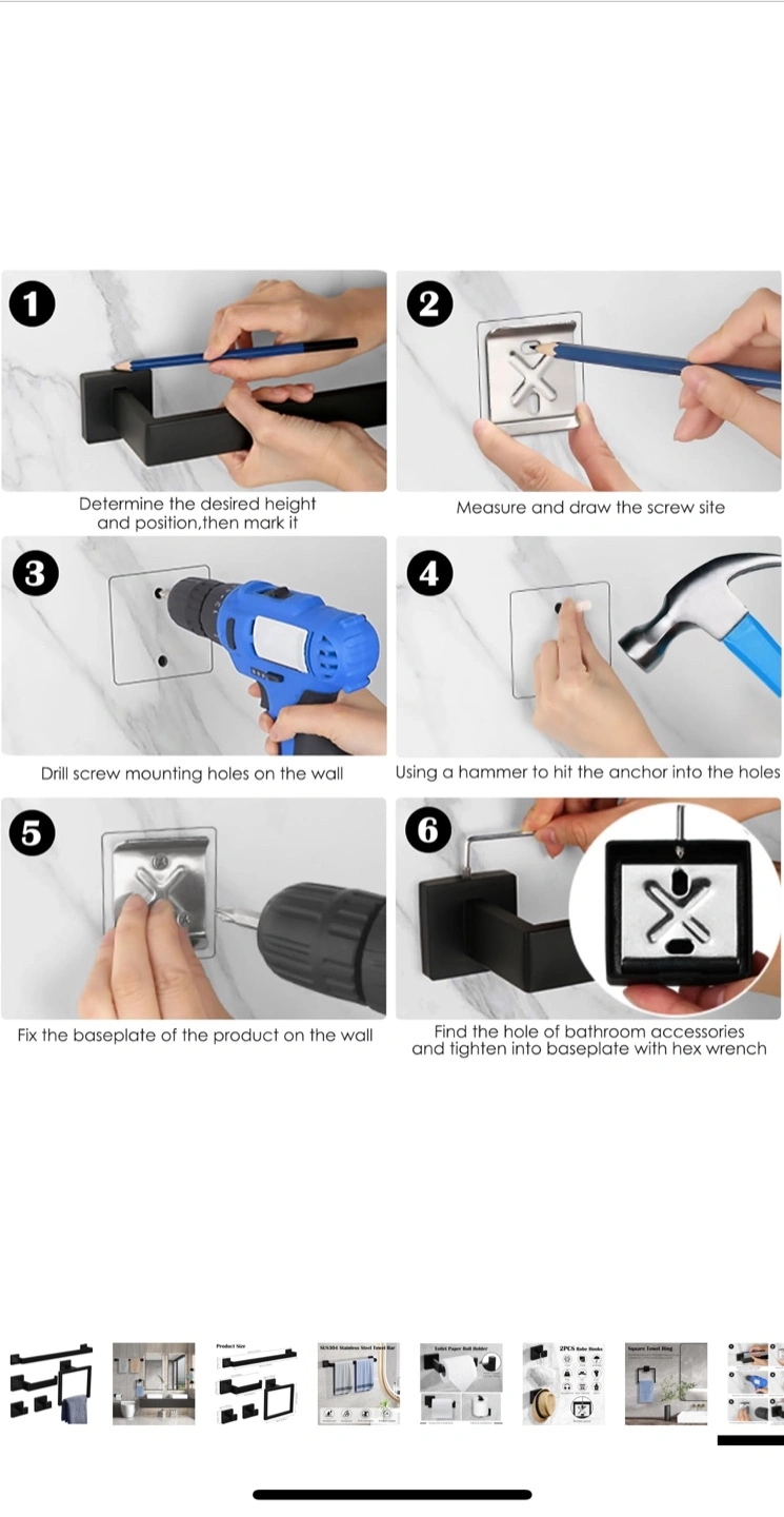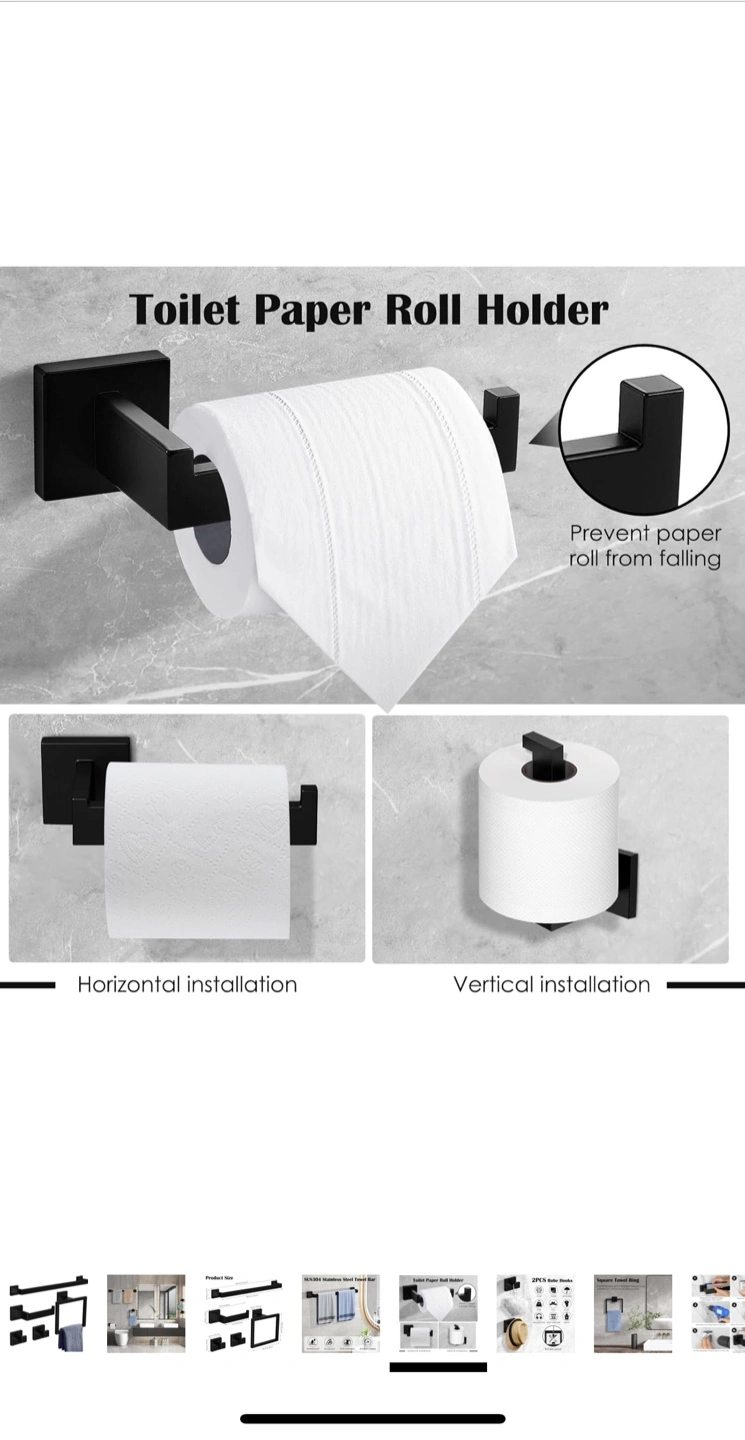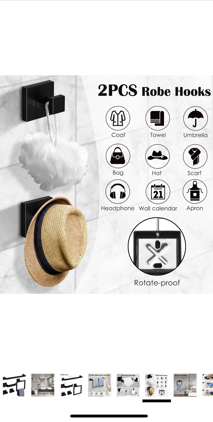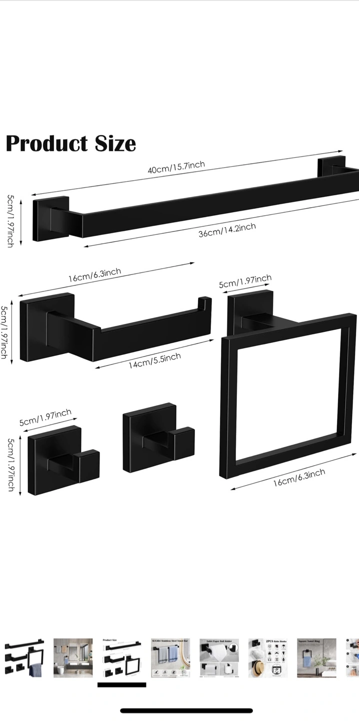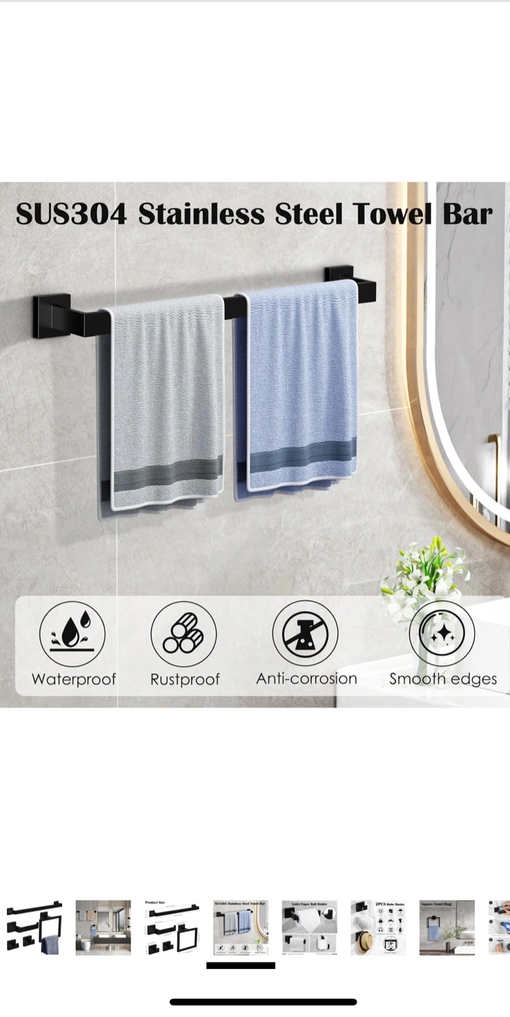 Looking to upgrade your bathroom? This Ahomxin 5-piece bathroom towel holder set is a great choice! It includes a 16-inch towel bar, toilet paper roll holder, matte black square towel ring, and two towel hooks. Made of SUS304 stainless steel, it's waterproof, rustproof, and anti-corrosion. Originally priced at $36.54.
