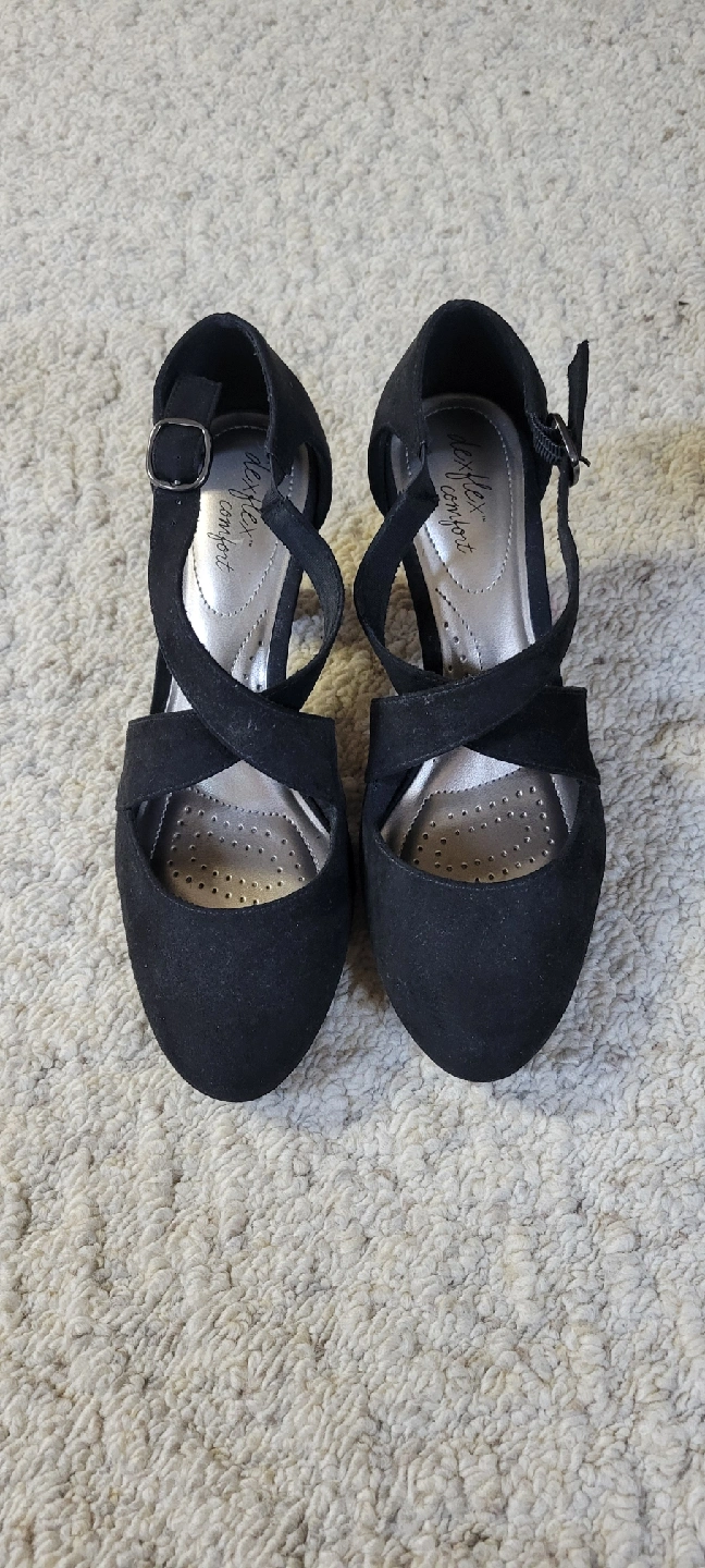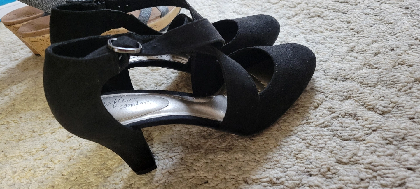 FIRM ON PRICE Selling a pair of Comfort Flex heels in black. They feature a stylish criss-cross strap design and are in great condition. Perfect for a night out or a special occasion!