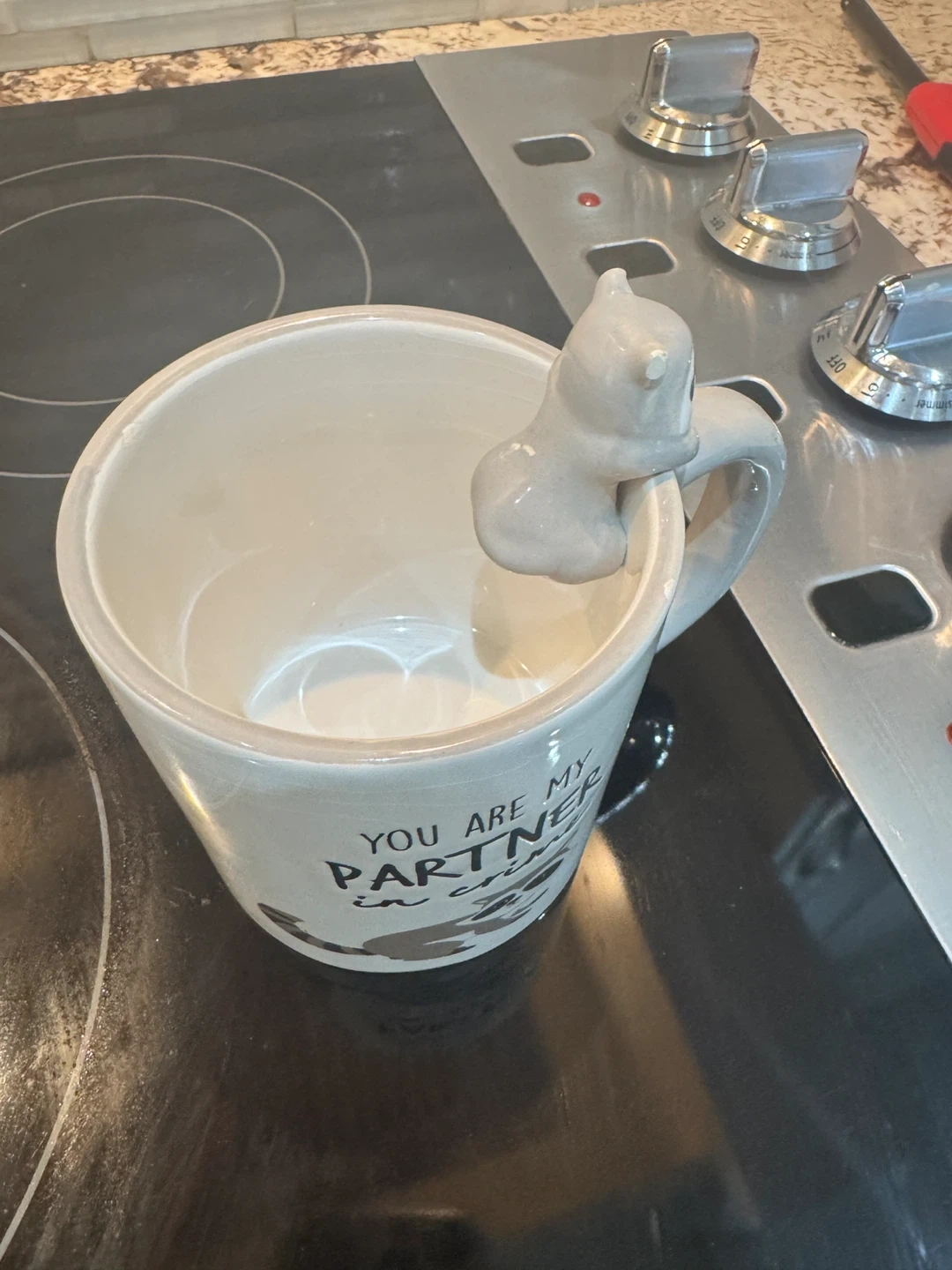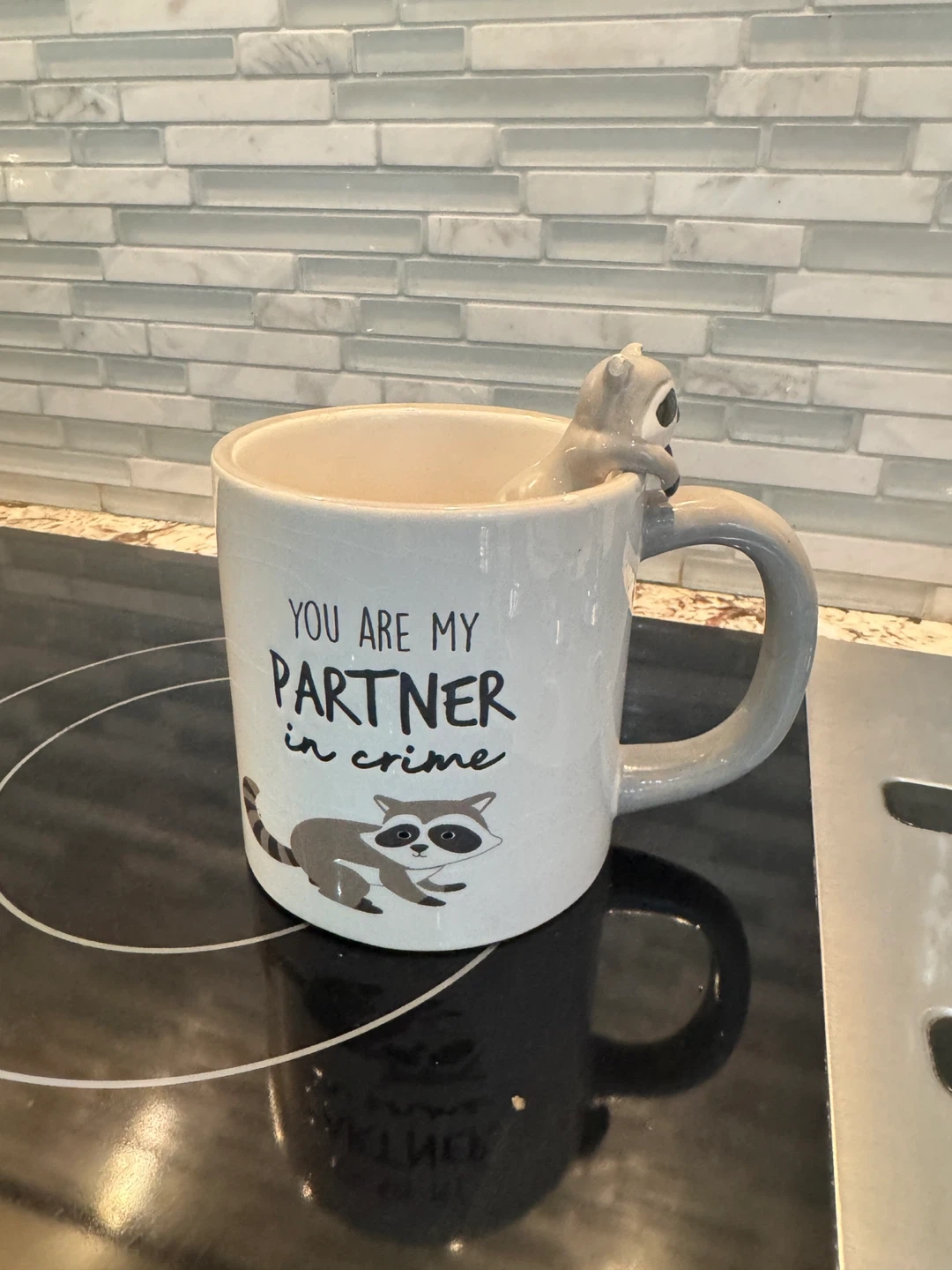 This adorable mug features a cute raccoon design and the words "You are my partner in crime"! It's perfect for coffee, tea, or any beverage. A fun and unique addition to your kitchen or a great gift for a friend