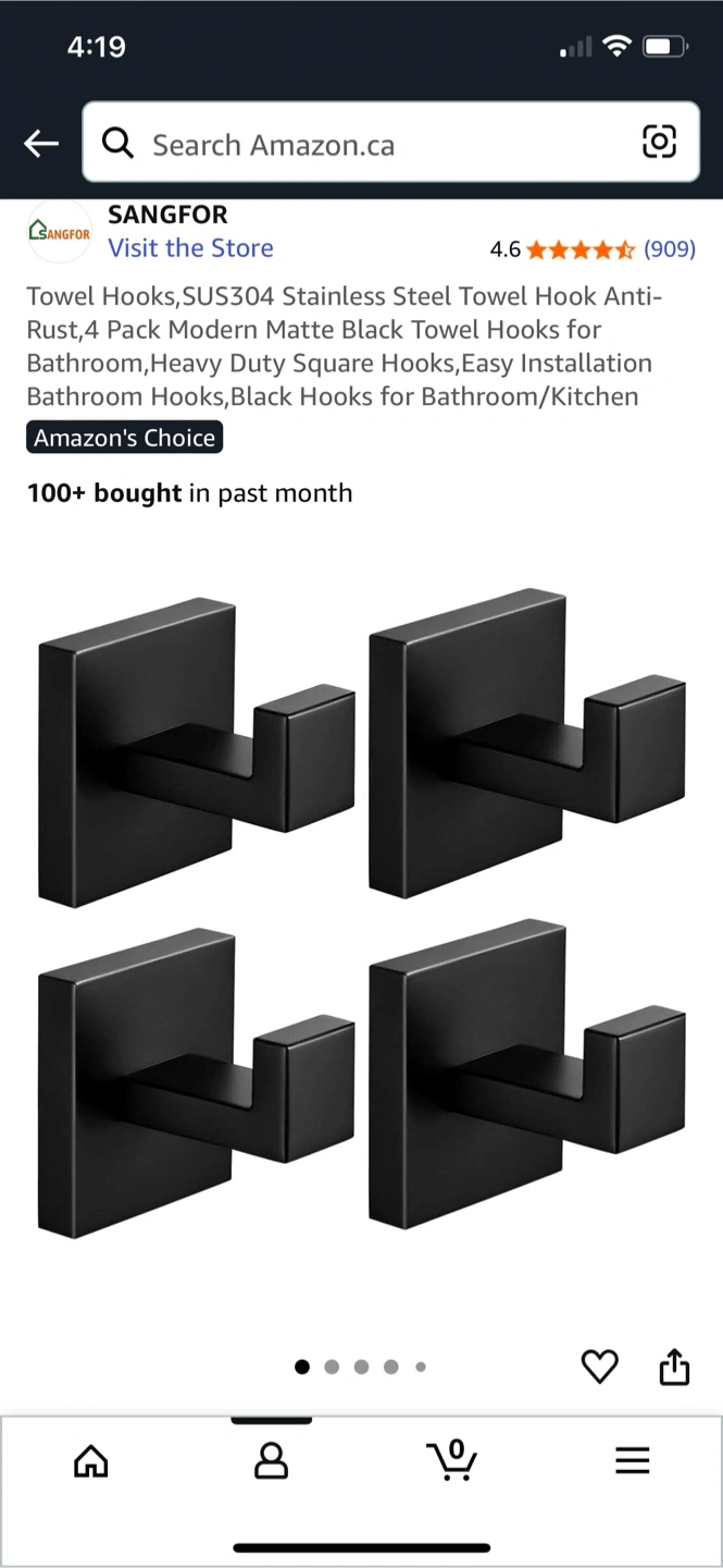 Looking to add some sleek and sturdy hooks to your bathroom or kitchen? These SANGFOR towel hooks are made of SUS304 stainless steel, making them waterproof, rustproof, and anti-corrosion. They're a modern matte black colour and are easy to install. Originally $19.99!