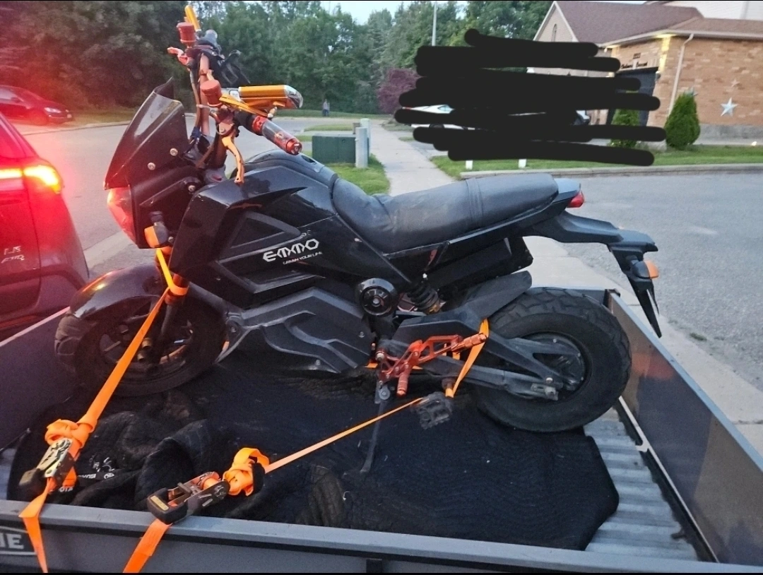 Used EMMO GTS Knight electric motorcycle. Black with orange accents.