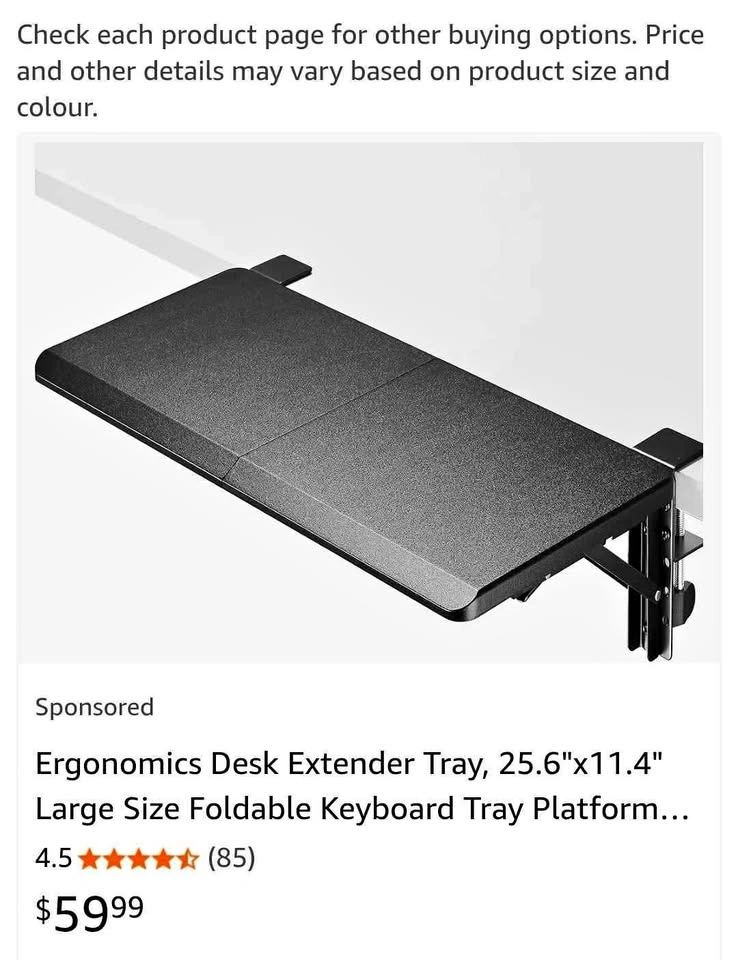 Ergonomics Desk Extender Tray, 25.6"x11.4" Large Size Foldable Keyboard Tray Platform Clamp On, Armrest Support for Home and Office (Wood) (Black)