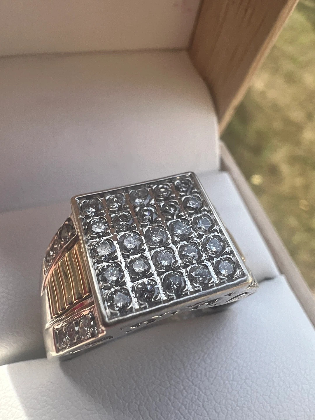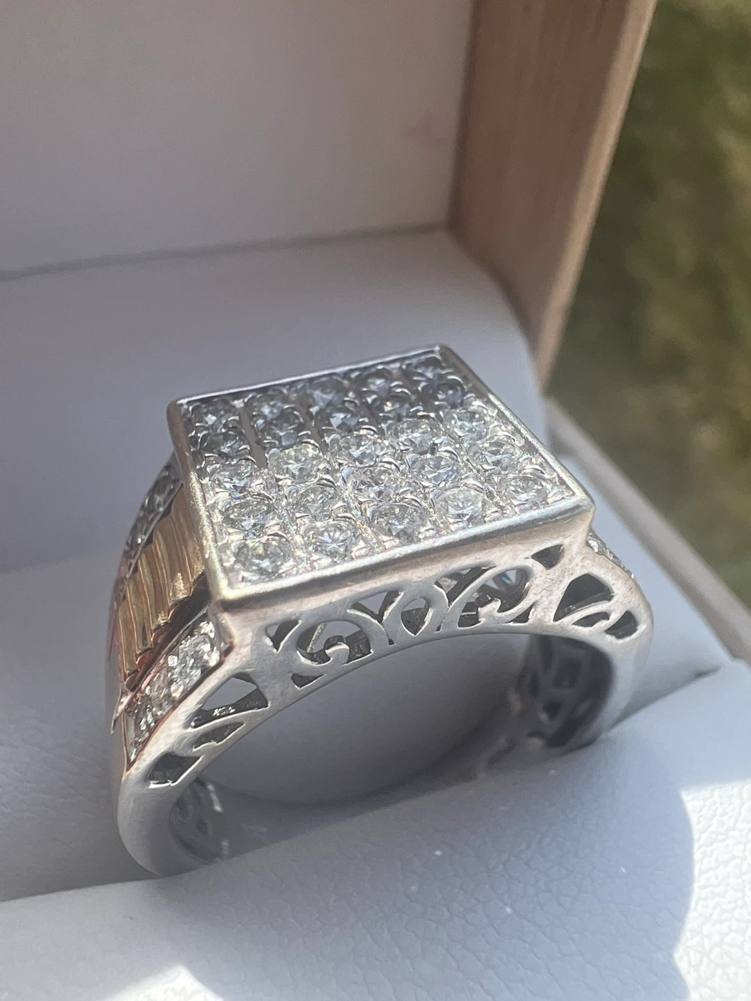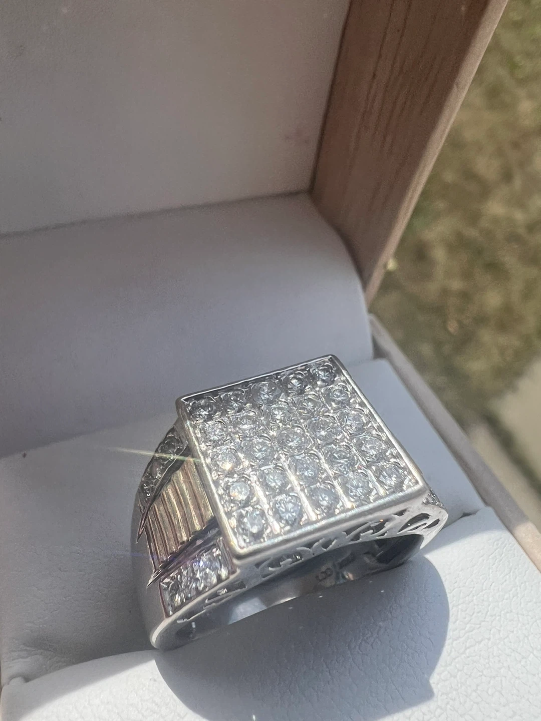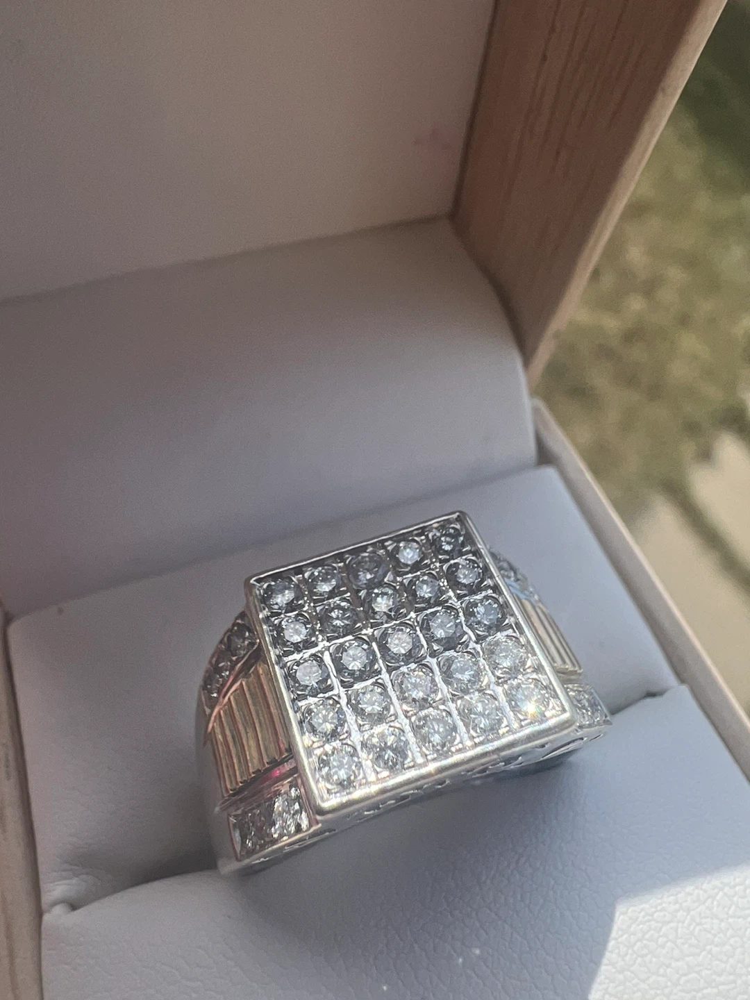 Selling a 10K white gold ring with a square face covered in diamonds. It's in great condition! Size 10.5-11 North east