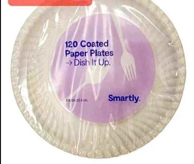 Smartly Coated Paper Plates, 9" 22.8cm Diameter, 120 Per Pack - White