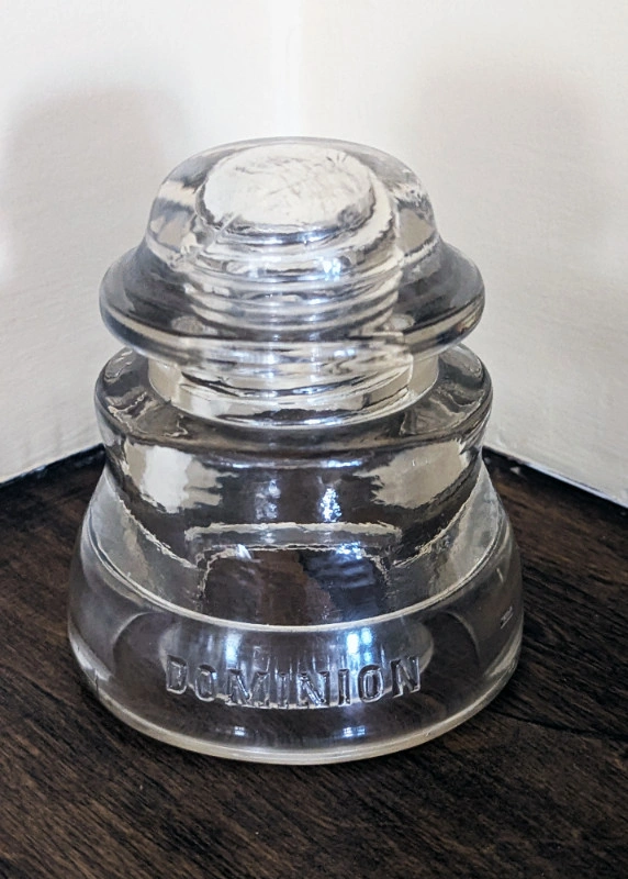Nice vintage Dominion Glass Insulator in great condition. Measures: 3.5" W x 4" H.