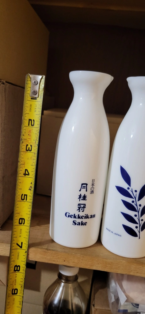 Selling a Gekkeikan Sake bottle, made in Japan. It's in great condition and features a lovely blue leaf design. Perfect for serving sake or as a decorative piece! I have a couple of them brand new! may do discount if buy in bulk
