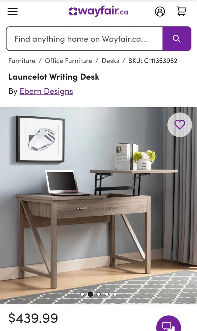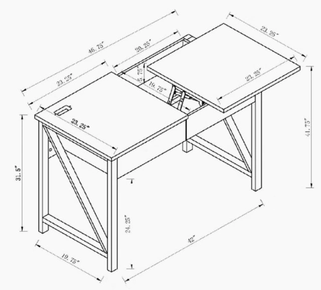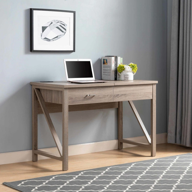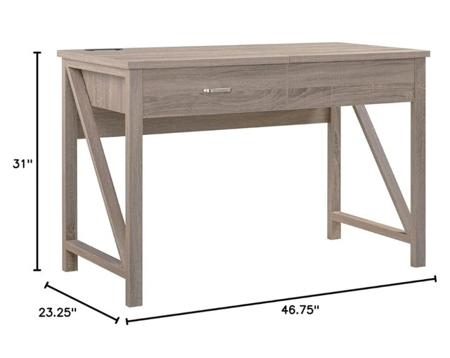 Brand new desk in original box with all parts for easy assembly. Retails at Wayfair for $497 ($440 + tax). Save your money. Pickup from south London. I can deliver in London for an extra fee. Ebern Designs 47 Inch Wide Dark Taupe Height Adjustable Standing Rectangle Writing Desk Home Office Desk, Lift- Top Desk with Drawer, USB/Power Outlet. It comes with tools and detailed instructions and is very easy to assemble. Desk Type: Writing Desks Shape: Rectangular Size: Medium Color: Taupe Style: Modern & Contemporary Dimensions: 23.25 In. W X 31.0 In. H X 46.75 In. D Overall Product Weight: 61 lb. Finish: Wood Finish Assembly: Assembly Required Product Features: Drawer, Lift-top Weight Capacity: 100 lb.