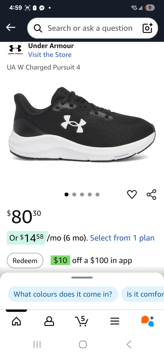 Selling a pair of Under Armour UA W Charged Pursuit 4 running shoes in black. They come with the original box! Originally bought for $80.30