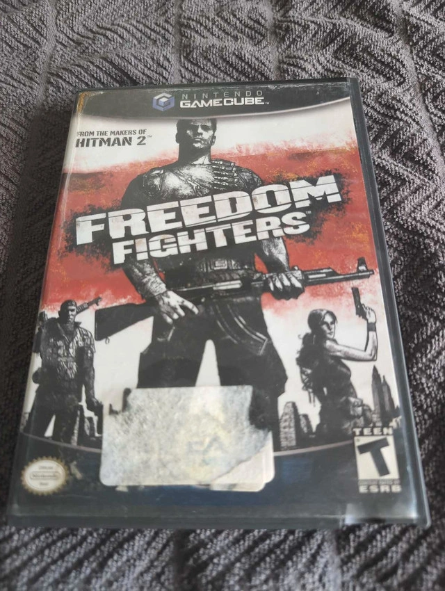 42Step into action with Freedom Fighters for the Nintendo GameCube! This game puts you in the heart of an alternate history where you'll lead a resistance movement against an invading superpower. This is a used copy of the game, disc and case are in good condition. * Platform: Nintendo GameCube * Genre: Third-Person Shooter * Publisher: EA Games * ESRB Rating: T for Teen If the ad's still up, the game's ready for a new home!
