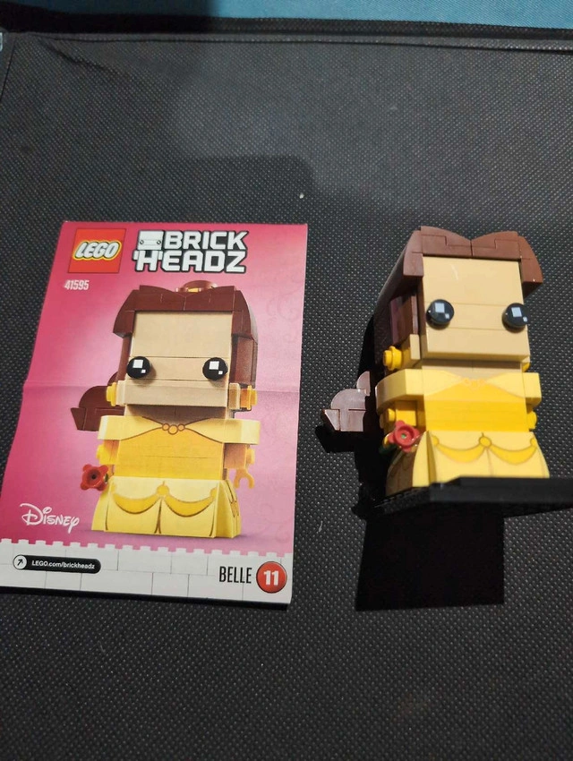 42I'm selling a used Lego Brickheadz Belle #41595. This charming collectible figure is a delightful addition to any Disney or Lego enthusiast's collection. It has been previously assembled but is still in good condition. Key features: * Model: 41595 * Character: Belle * From: Disney's Beauty and the Beast * Number of Pieces: 139 This Lego Brickheadz Belle is looking for a new home where she can be appreciated and displayed. She brings a touch of fairy-tale magic to any space! If the ad is up, it's available!