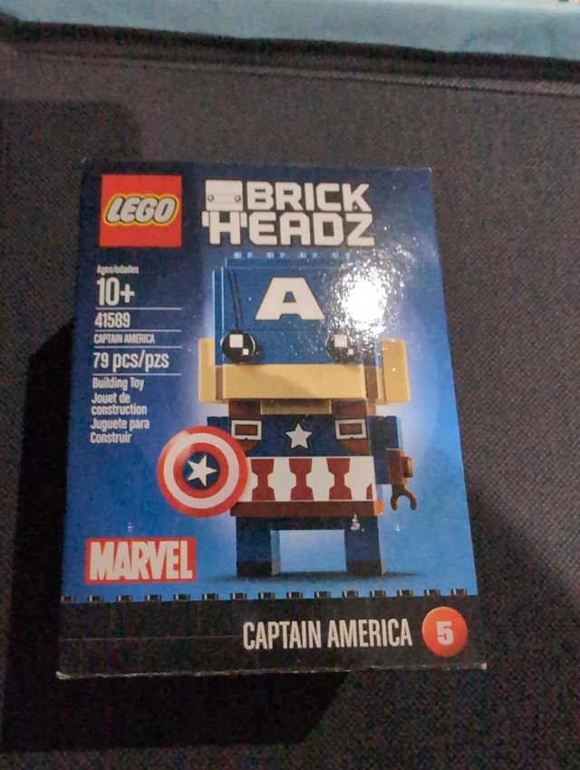 92I'm offering a Lego Brickheadz Captain America set, number 41589, complete with 79 pieces for builders aged 10 and up! This quirky, blocky version of Captain America is a fun build and a great display piece for any Marvel fan. * Set Number: 41589 * Theme: Brickheadz, Marvel * Character: Captain America * Piece Count: 79 * Age Range: 10+ If the ad is up, it's still available, so no need to ask!