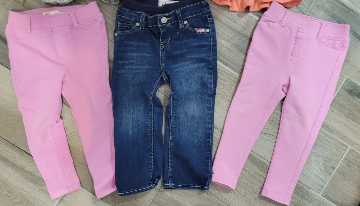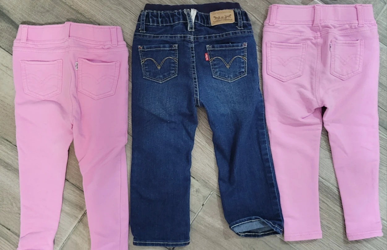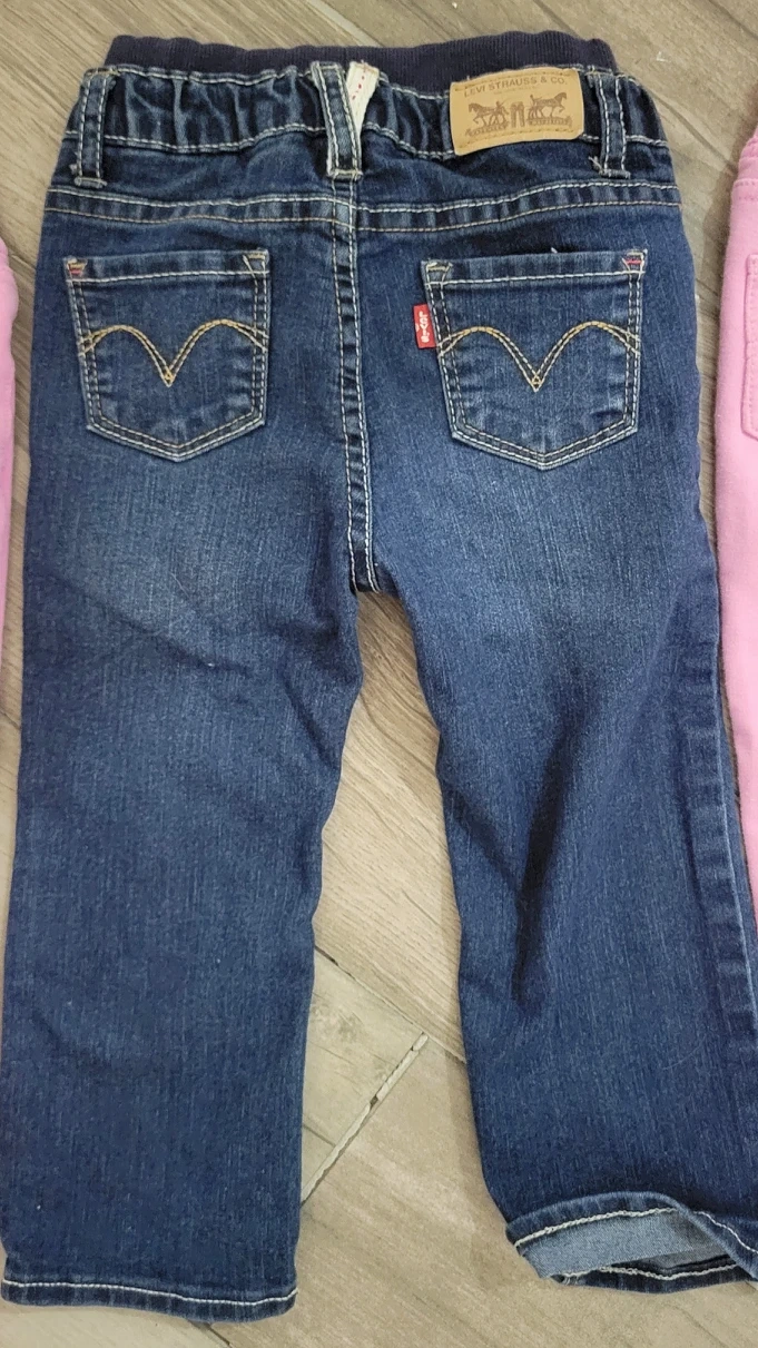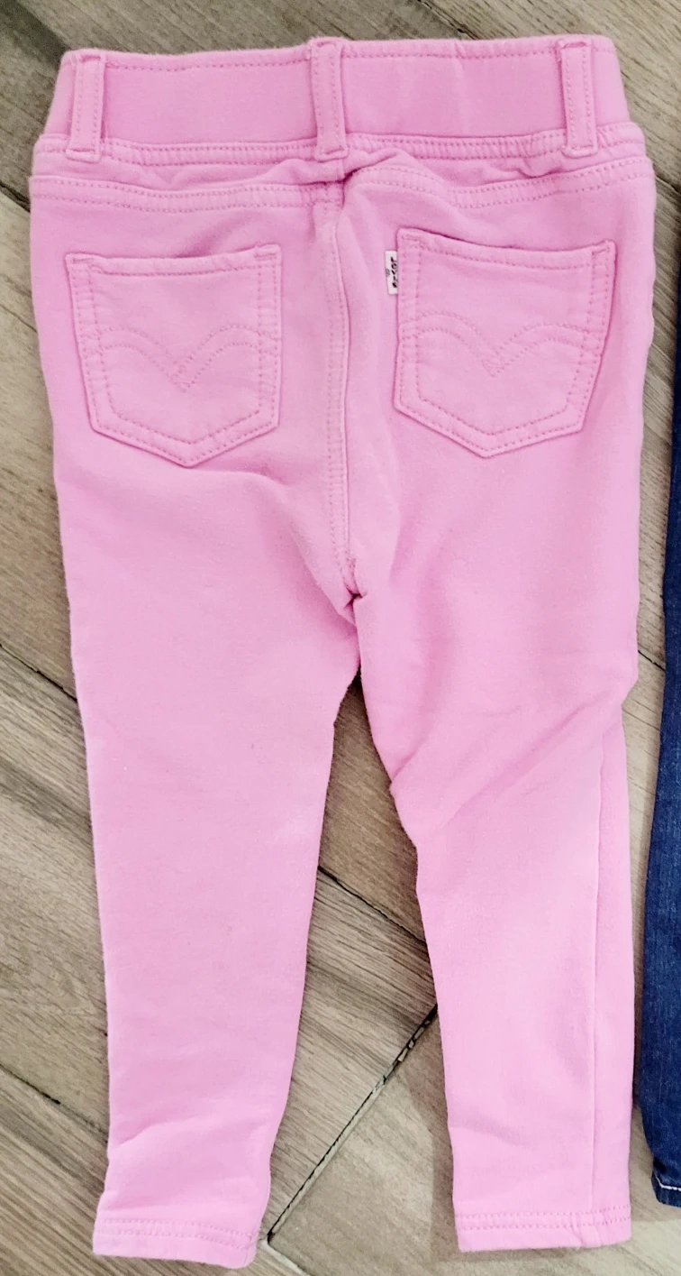 3 pairs of LEVIS pants. 1 pair of denim jeans size 24months . 2 identical LEVIS baby pink leggings size 24months. 1 LEVIS long sleeve shirt size 18-24 months. 1 long sleeve LEVIS hooded sweatshirt size 18-24 months. ALL in GOOD AS NEW condition. RETAIL PRICE all together over $100. I'm selling all for $40 all together.