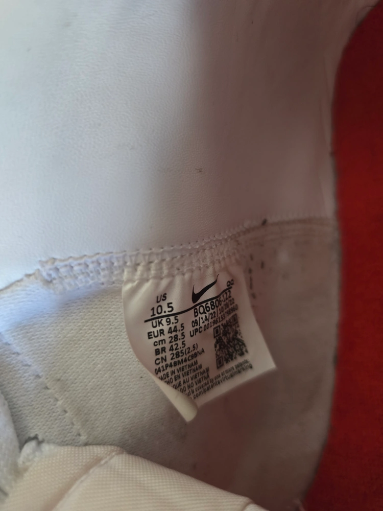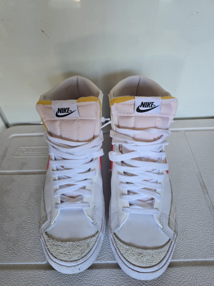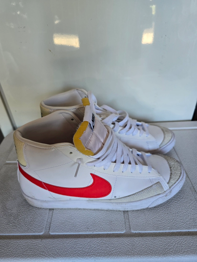 73Selling a pair of Nike Blazer Mid '77 sneakers in a classic white and red colourway! The size is US 10.5. These shoes have a timeless style and are in good condition for everyday wear
