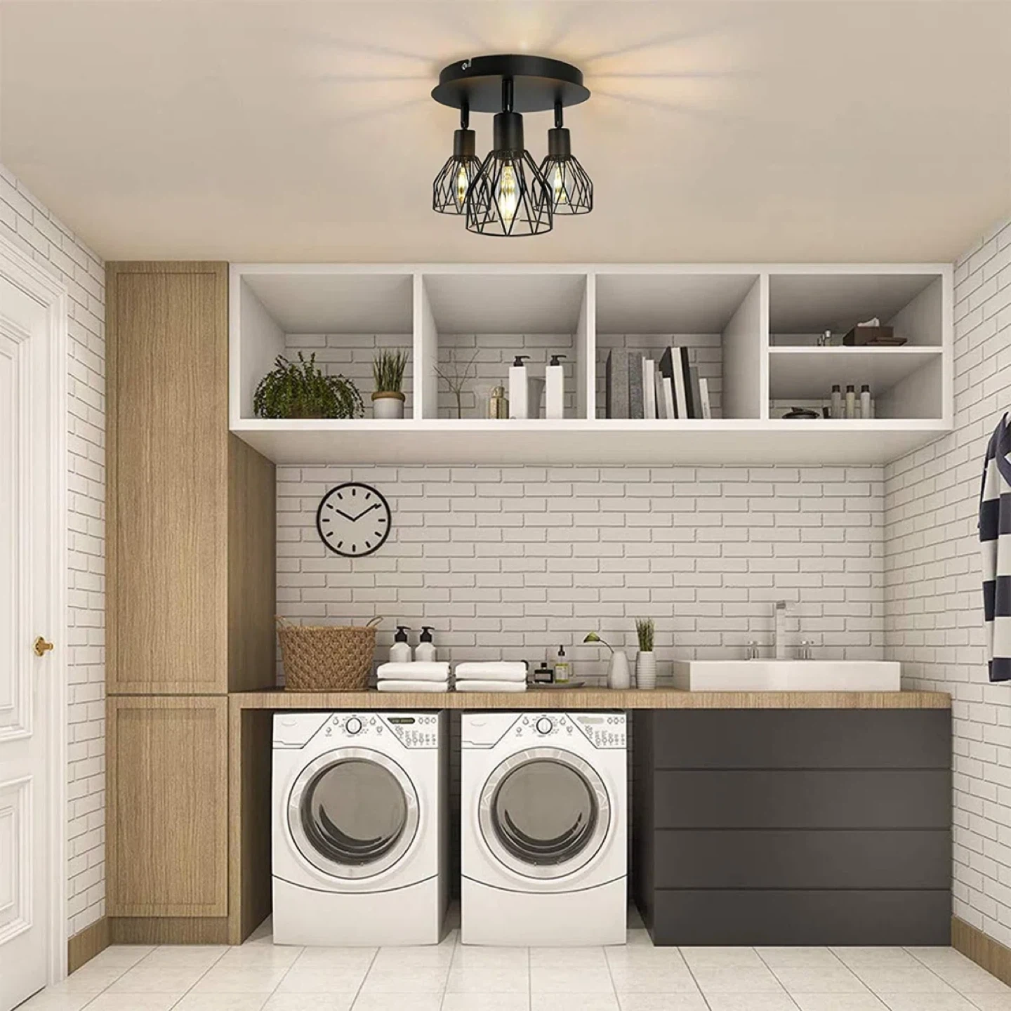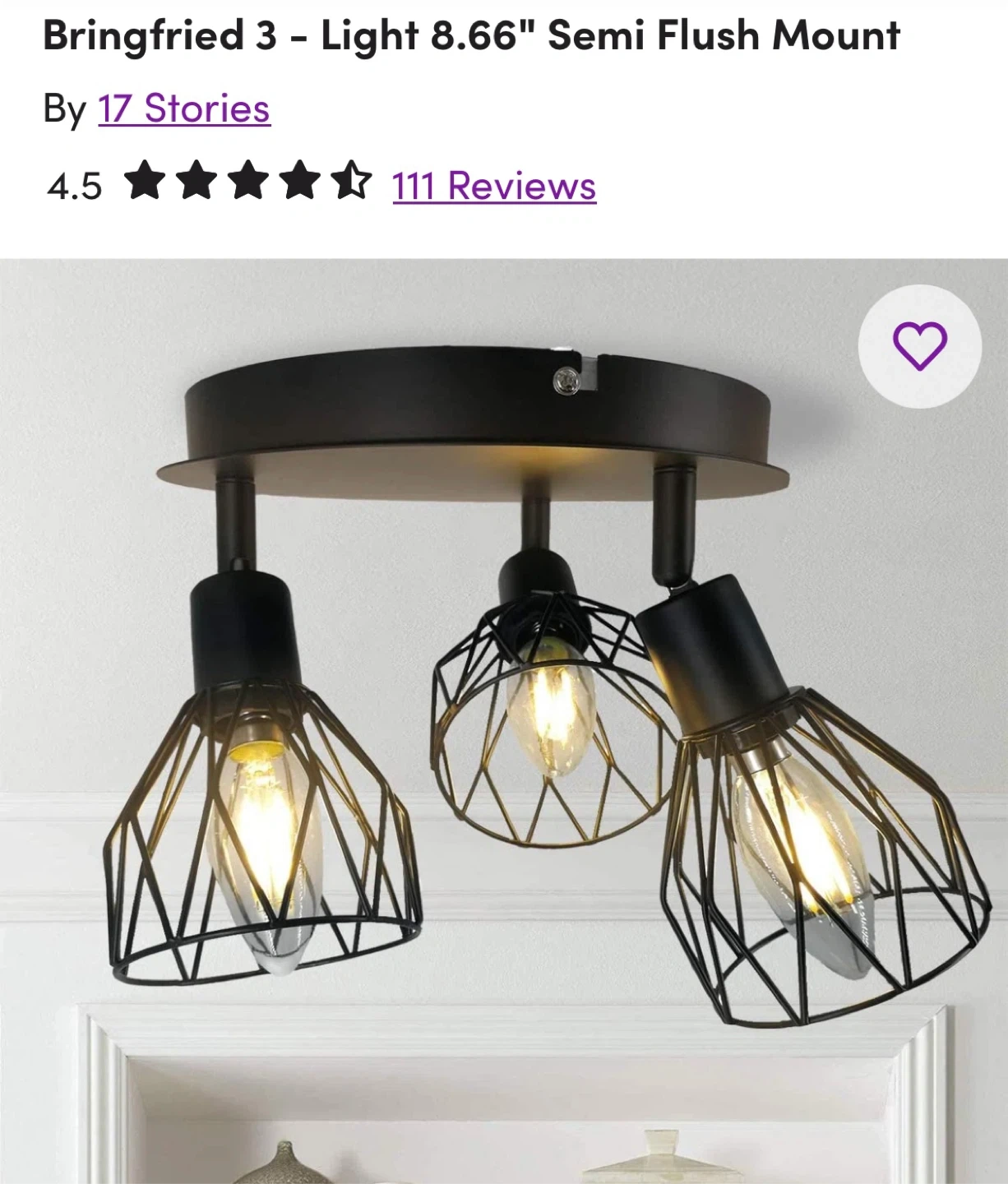 Selling a 17 Stories Bringfried 3 - Light 8.66" Semi Flush Mount. It's a stylish lighting fixture with a black finish. The dimensions are approximately 22cm (8.66 inches) in diameter and 20cm (7.87 inches) in height. Compatible with E12 based bulbs, allowing you to create a warm and relaxed atmosphere with dimmable bulbs (dimmer switch sold separately)