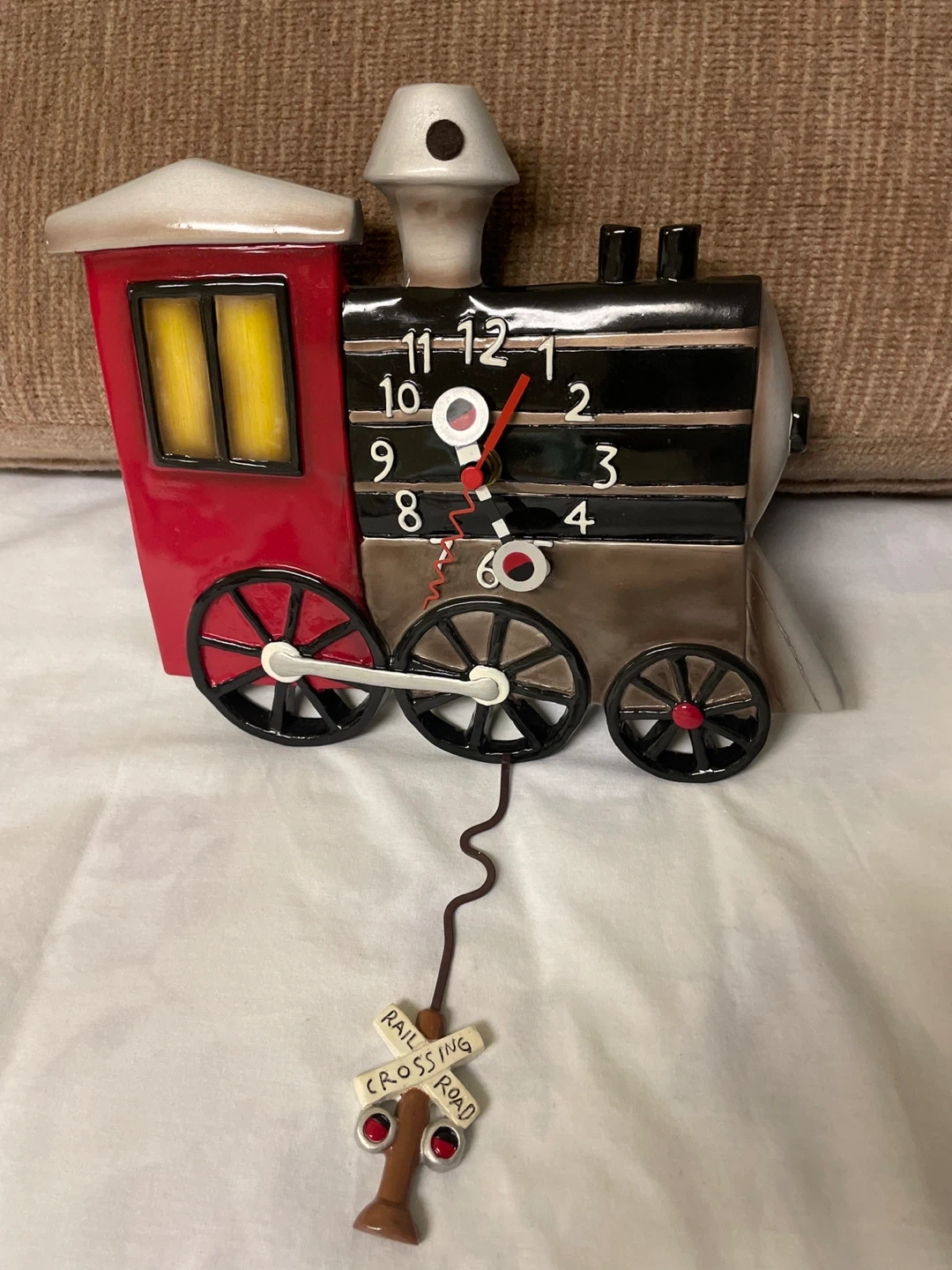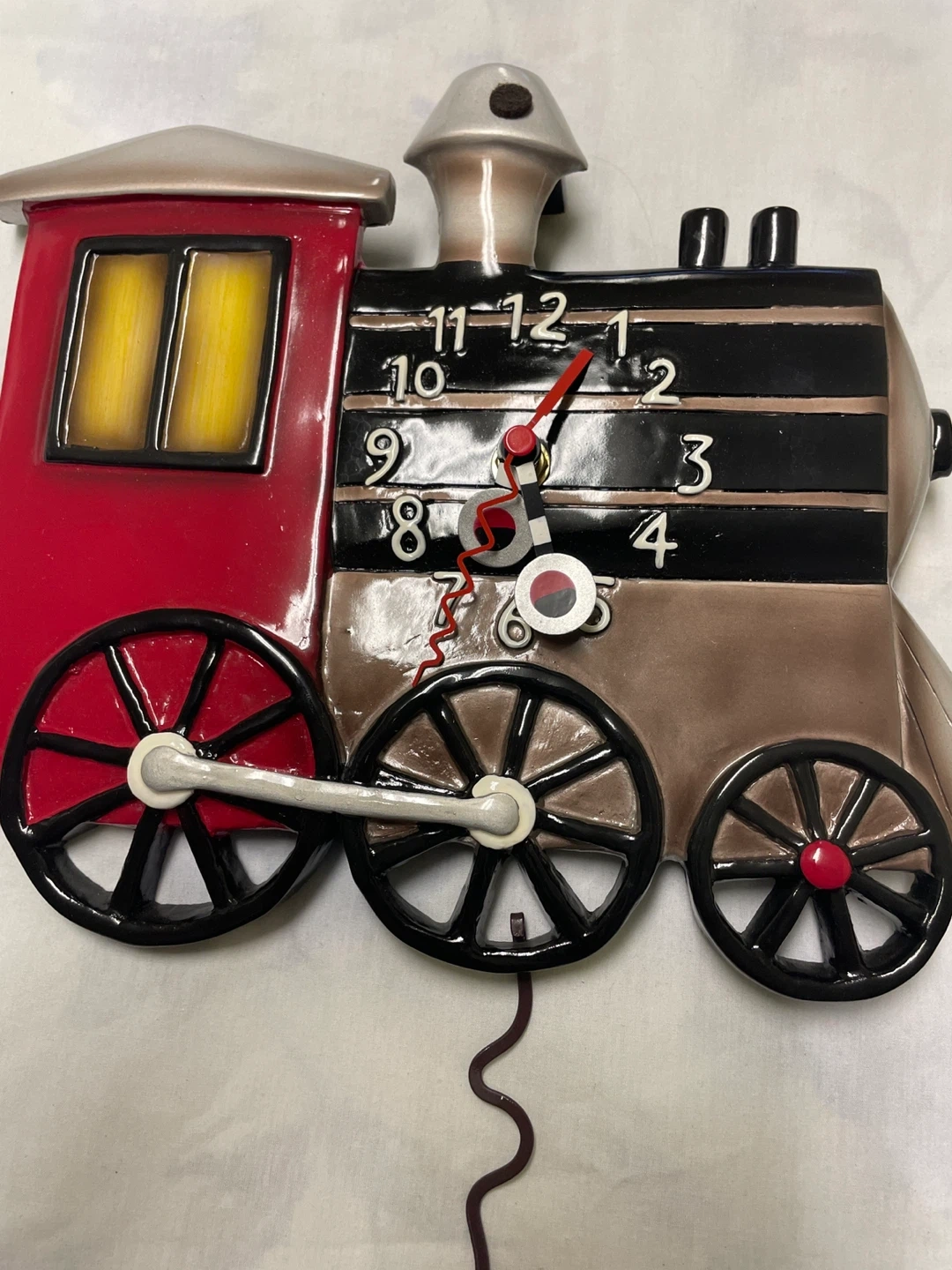 Choo choo! I'm selling an Allen Designs Studio Collection train clock. It's in great shape and would look great in a kid's room or for a train enthusiast AUTHENTIC ALLEN DESIGN CHOO CHOO TRAIN CLOCK. NEW NEVER DISPLAYED. VIBRANT COLOURS. WORKS. SUCH A BEAUTY FOR ANY COLLECTOR OR EVEN FOR S CHILD’s ROOM MEASURES: 9 1/2” x 9” Pendulum is 6” Uses one AA BATTERY PICK UP IN SCARBOROUGH MIDLAND AND EGLINTON