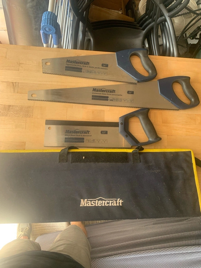 I'm selling a used Mastercraft Hand Saw Set with a carrying case. The set includes a 22 inch saw, 14 inch saw, and 12 inch saw. They are in like new condition.