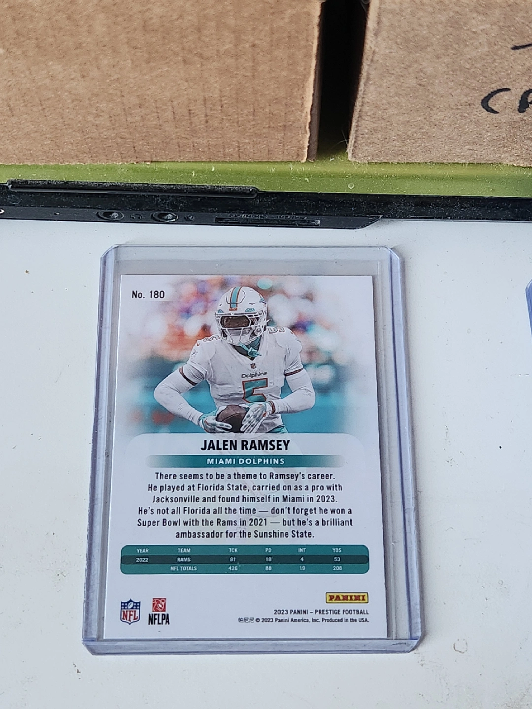 65Selling a Jalen Ramsey Prestige 2023 football card! It's in great condition and ready for a new home. A must-have for any Miami Dolphins or football card collector