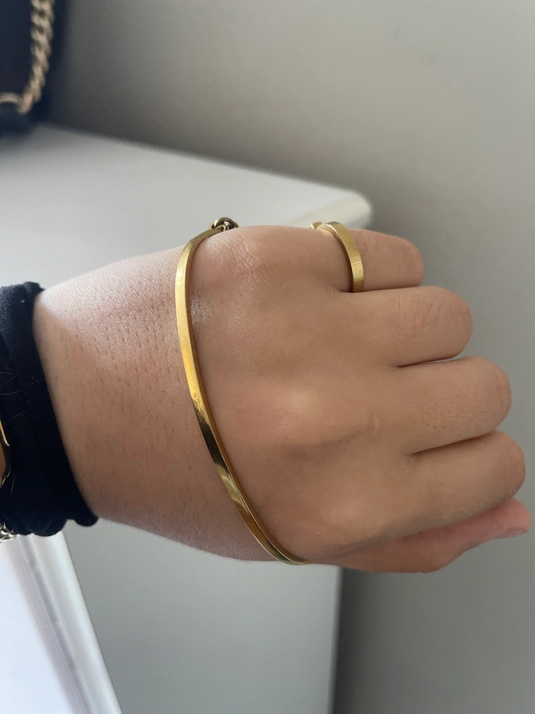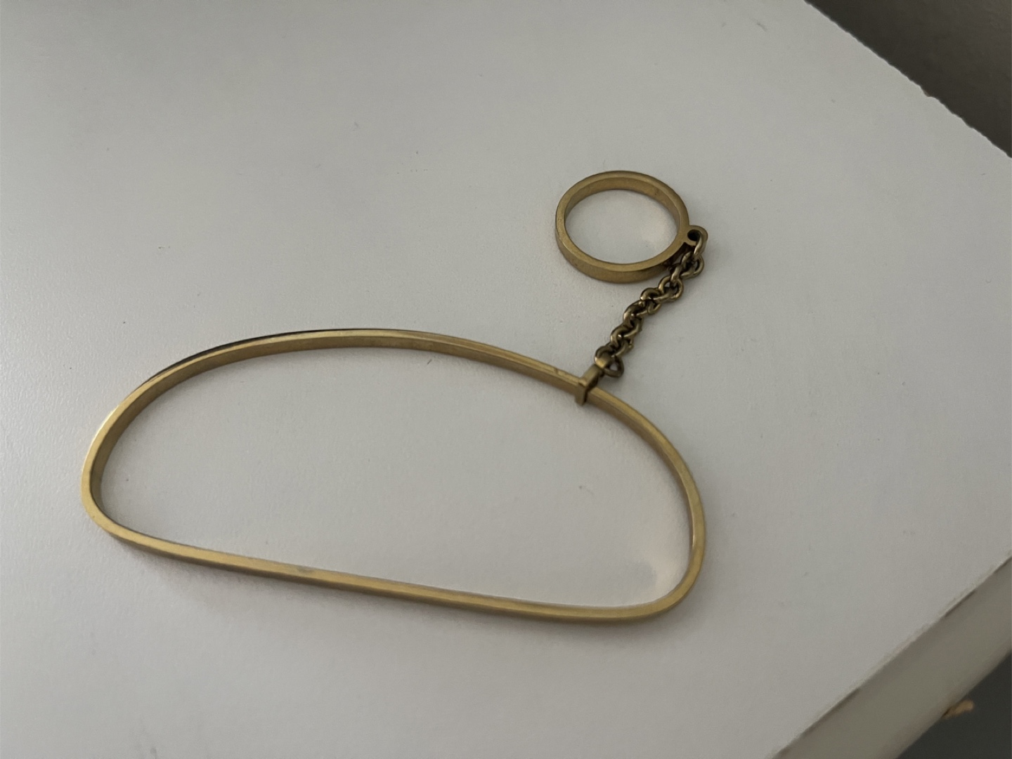 Selling a MAM gold bangle bracelet. It's in great condition and has a unique design with a small ring detail. Perfect for adding a touch of elegance to any outfit! Ring is a size 6