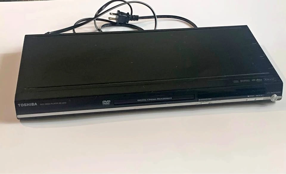 Upgrade your DVD collection with this gently used Toshiba SD-4000 DVD Player, featuring Digital Cinema Progressive Scan for crisp, high-quality playback. Tested and in good working condition, it's perfect for a secondary setup or a budget-friendly option to enjoy your favorite movies again.