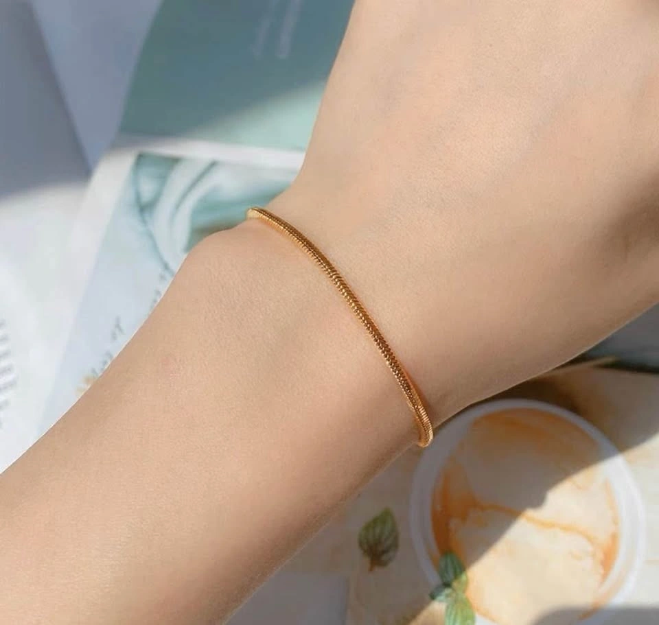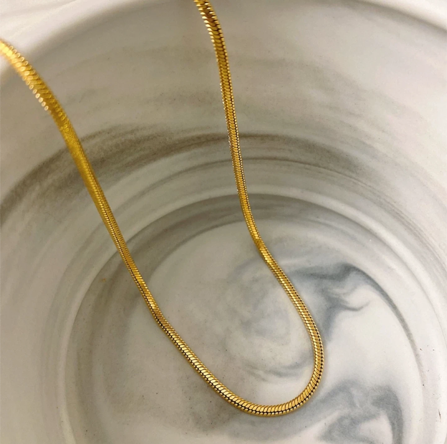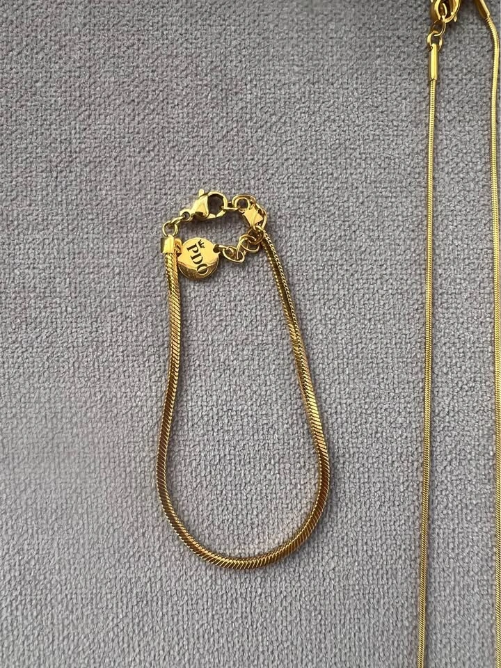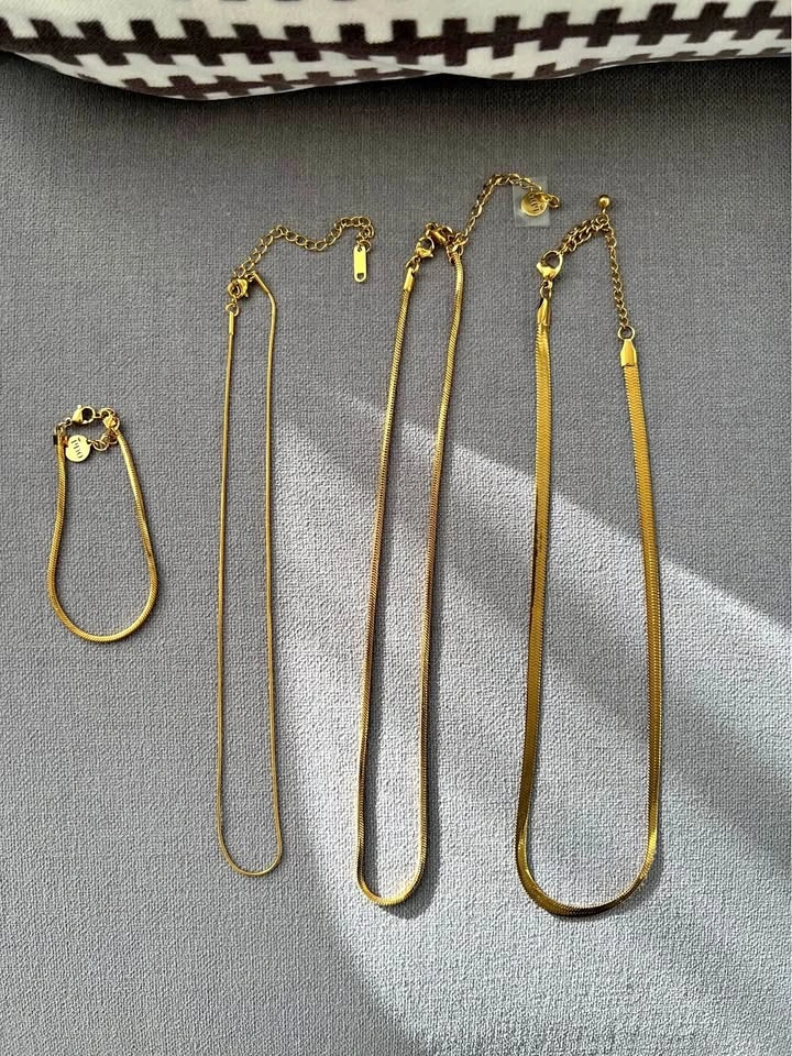This stunning 18K gold plated snake chain necklace & bracelet set adds a touch of elegance to any outfit. Perfect for any occasion. Only selling as set of 4! ( 3 necklaces & 1 bracelet)