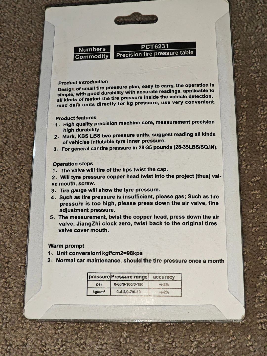 * Measure up to 100 psi or up to 7 kg/cm2