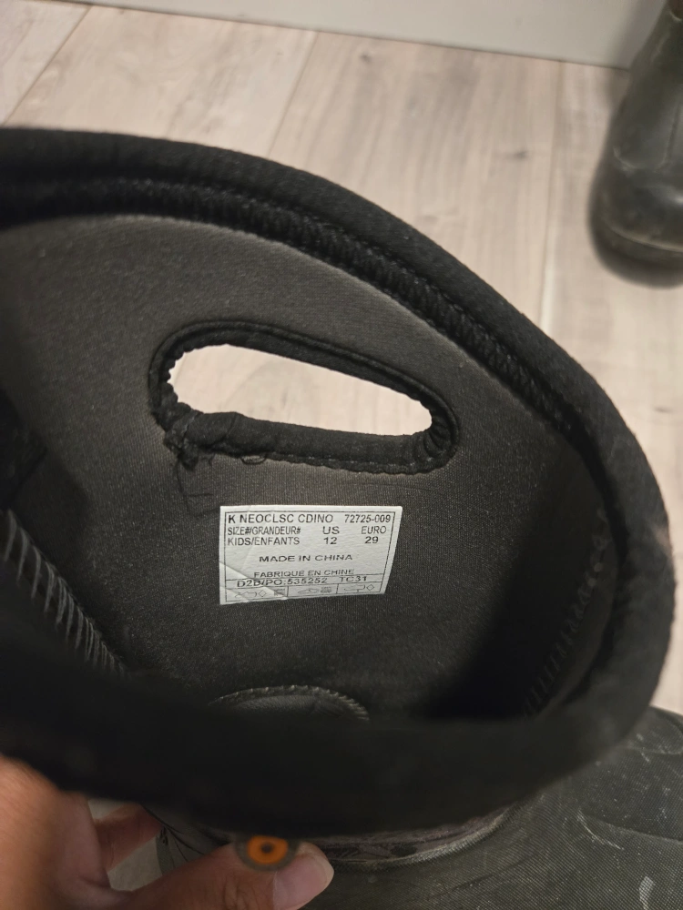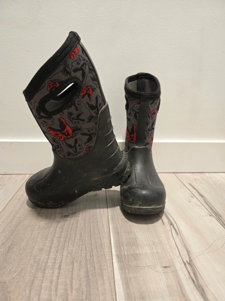Selling a pair of BOGS Neoclassic Dino boots in size 12. They're perfect for keeping your little one's feet warm and dry during those wet Canadian days. These boots feature a fun dinosaur pattern that kids will love!