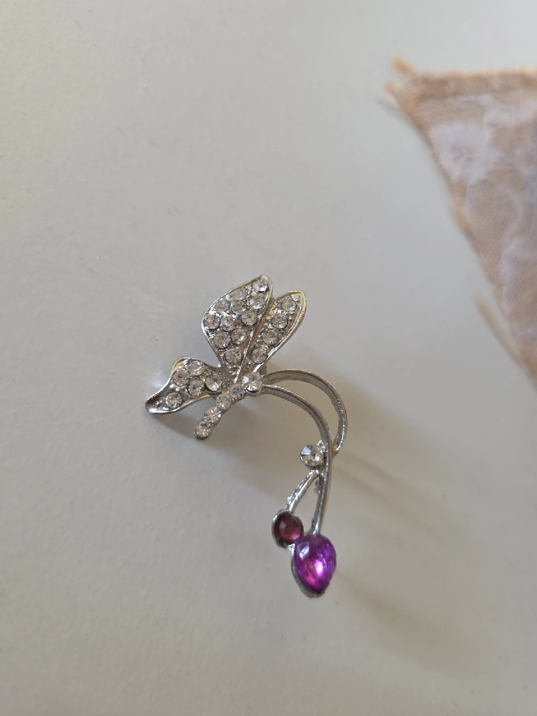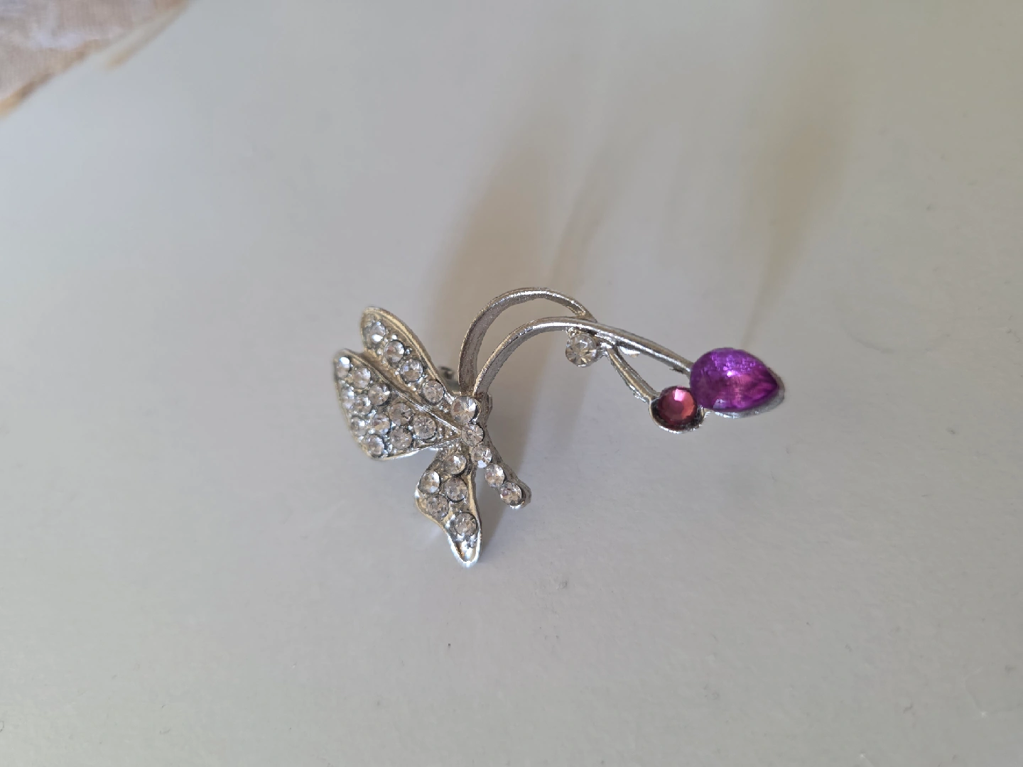 A lovely butterfly ear cuff, perfect for adding a touch of sparkle. Features rhinestones on the wings and colourful accents.