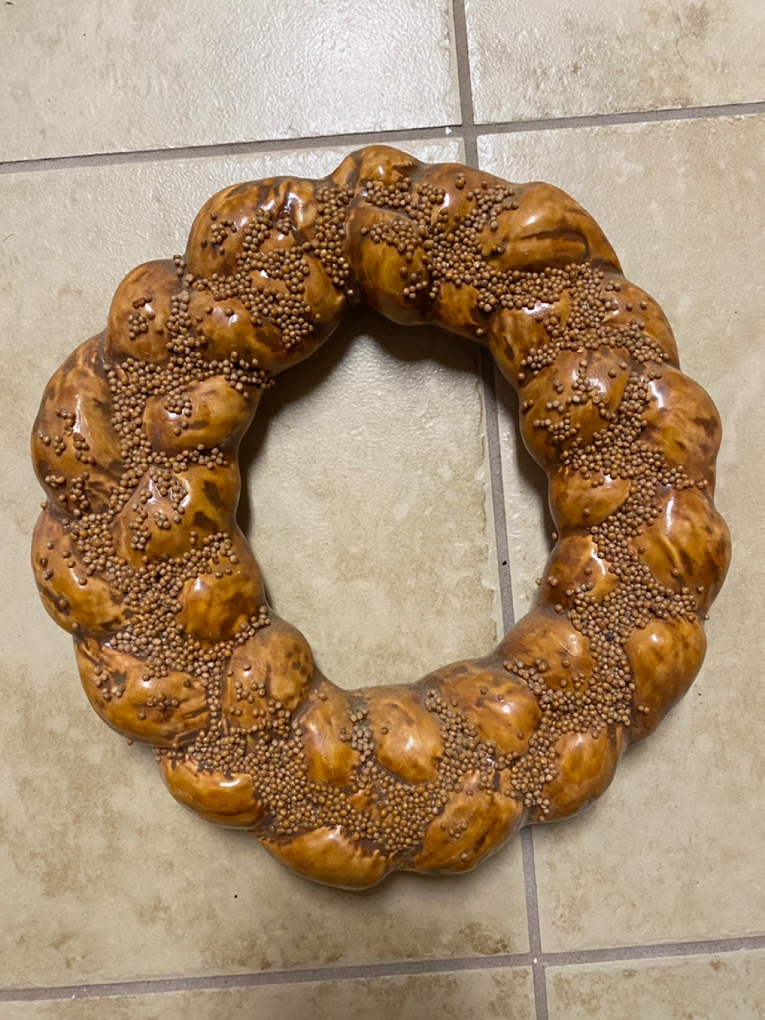 Selling a brown decorative wreath. It's in good condition and would look great on a door or wall. Vintage 70s