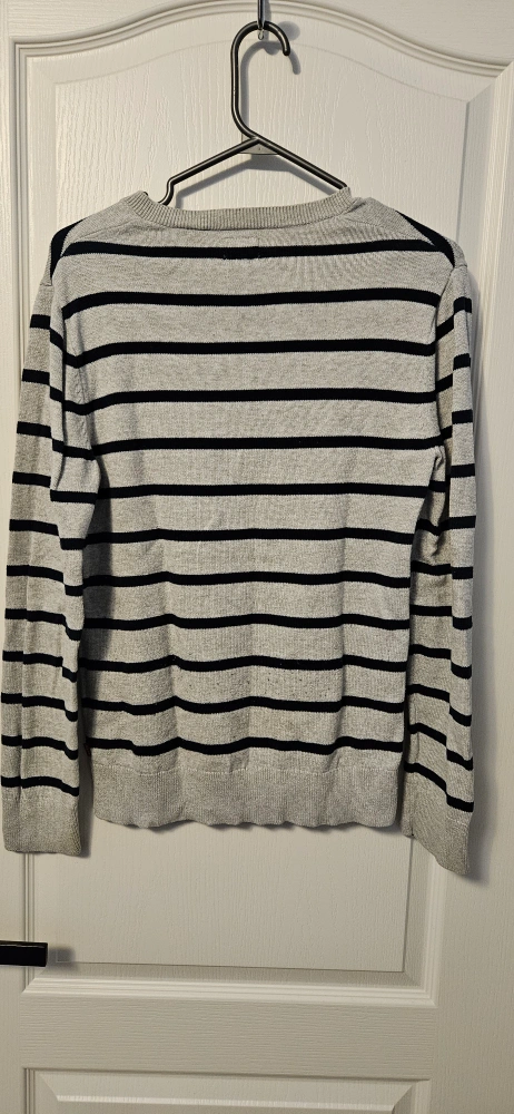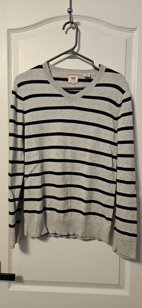 Cozy Levi's sweater with a classic stripe pattern! This V-neck sweater is perfect for layering or wearing on its own. It's a size medium and in great condition. A stylish addition to any wardrobe!