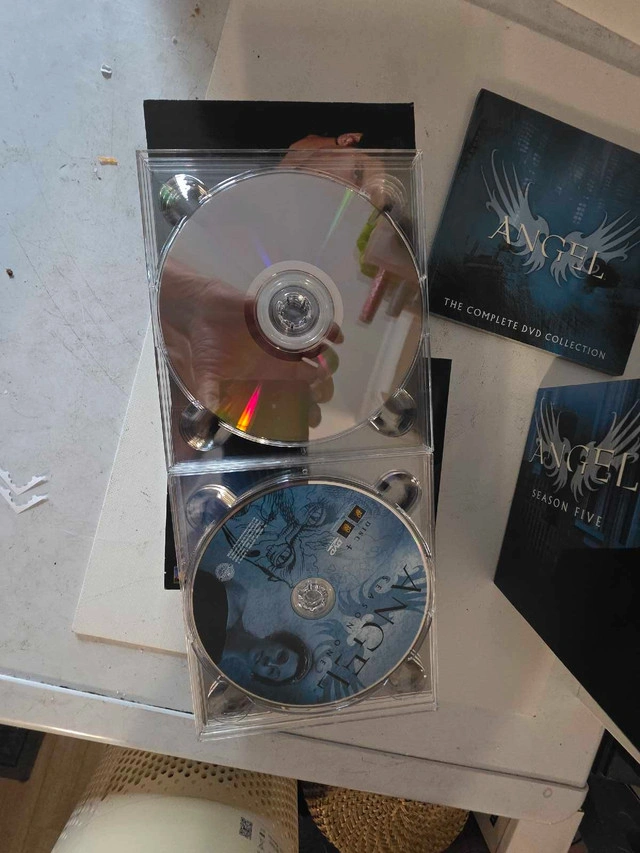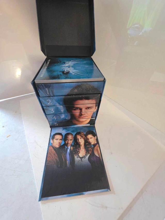 Click on photos to get better view. I'm selling the complete Angel Seasons 1-5 DVD box set. This collection includes all seasons of the series. The set is in apparant perfect condition. Looking at discs I see no sigh of use. All discs are present Also two pamphlets included. Look at other listings and make a bundle offer. If you see this ad, it means the item is still available, so no need to ask! Happy viewing!