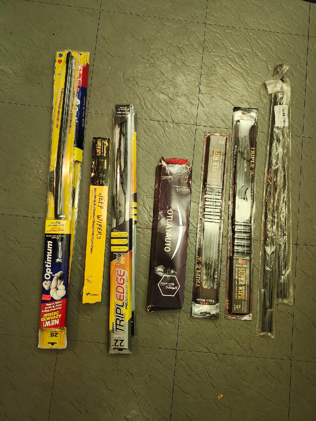 I have a selection of windshield wiper blades for sale. Brands include Michelin Optimum, Triple A (Super Wipe and Extra Miles), Jeep Wipers, and Otuayauto rear wiper. Sizes vary. Great for stocking up!