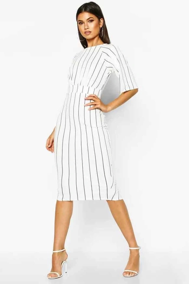 Brand - Boohoo Color - white Size - US 10, UK 14, EU 42 95% Polyester, 5% Elastane. Flat Measurement of Garment: Shoulder To Hem 110cm/43", Bust 36cm/15", Waist 32cm/12.5. Machine Washable.
