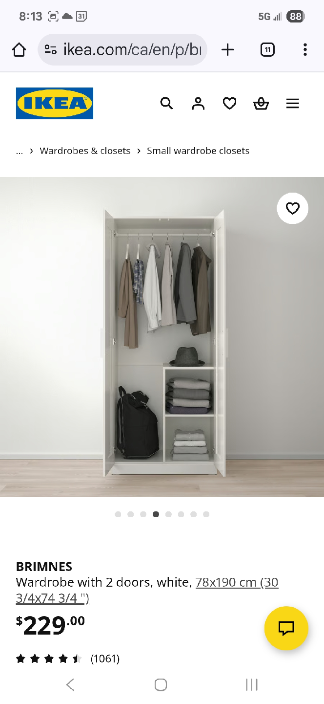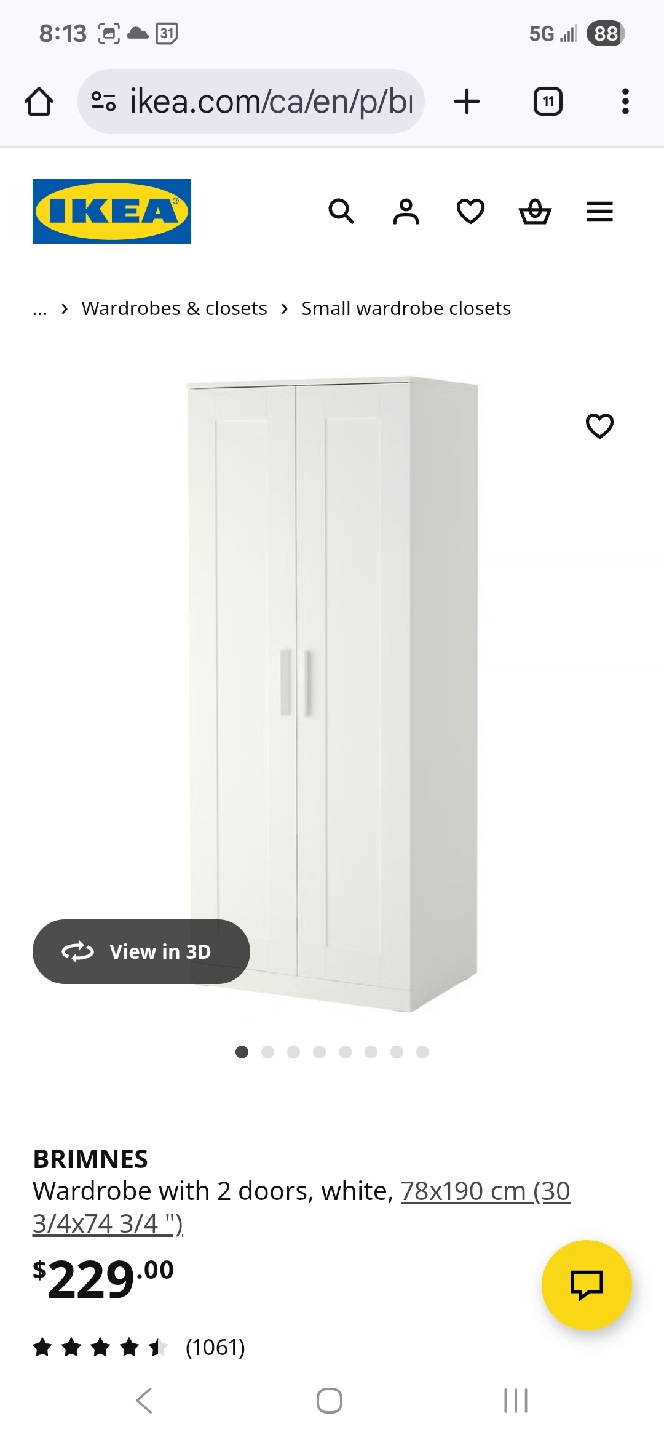 IKEA Brimnes Wardrobe with 2 Doors - White