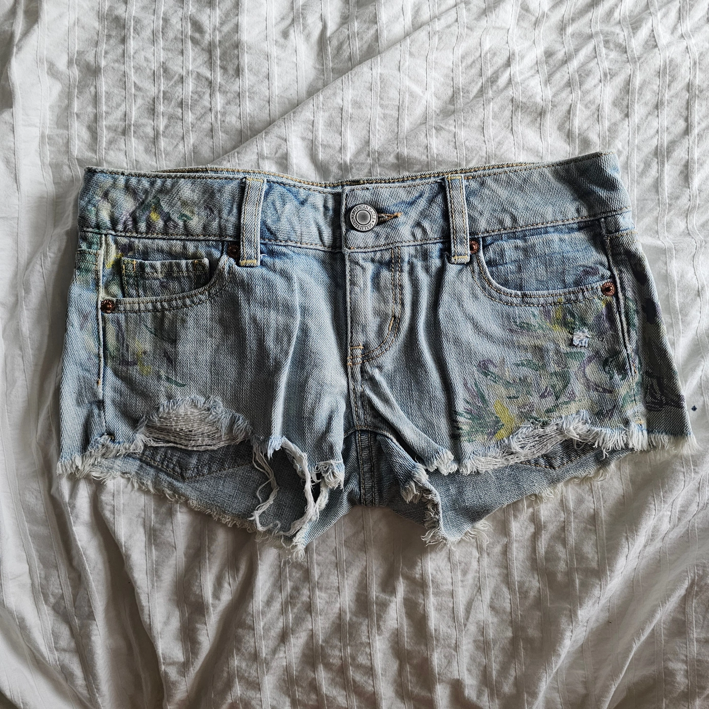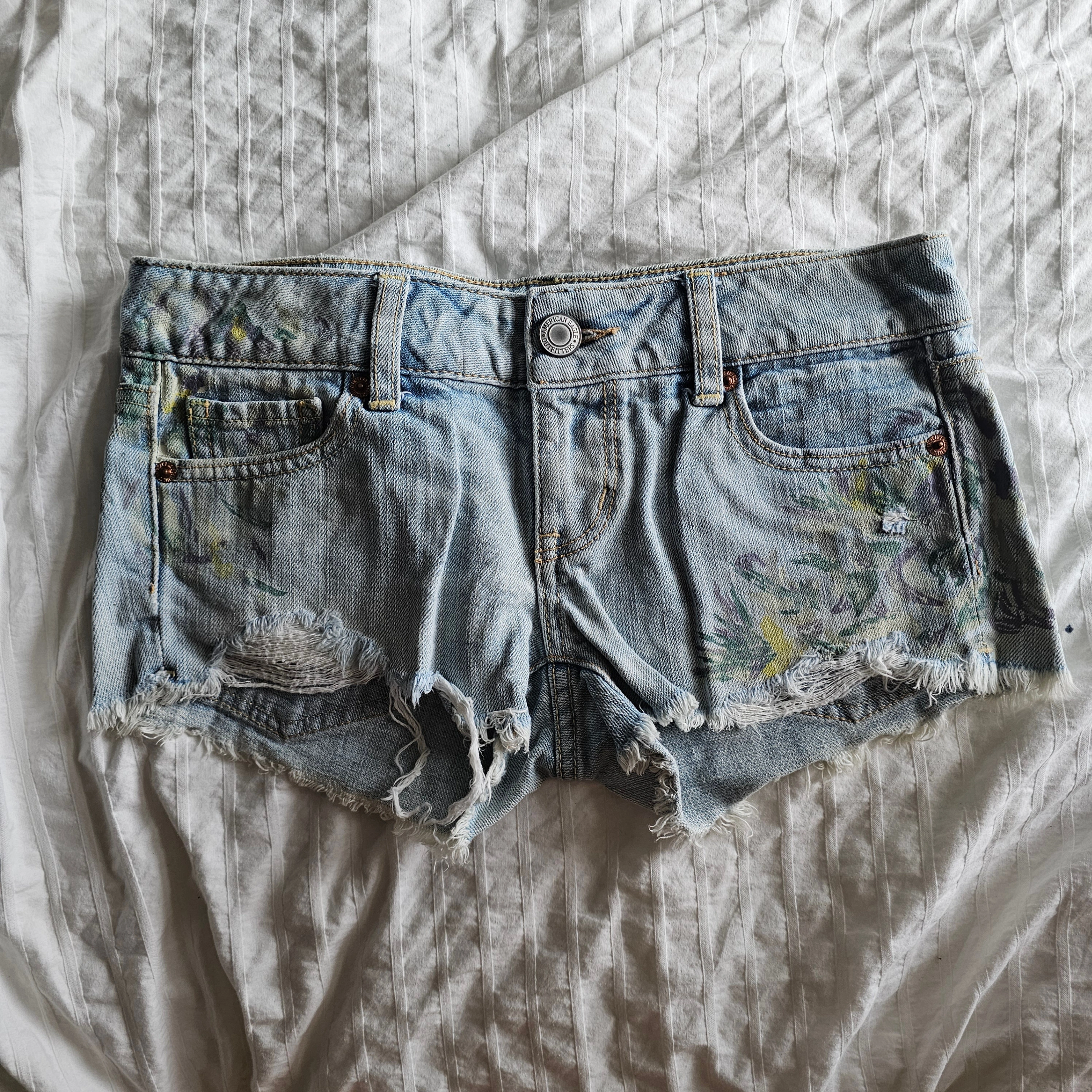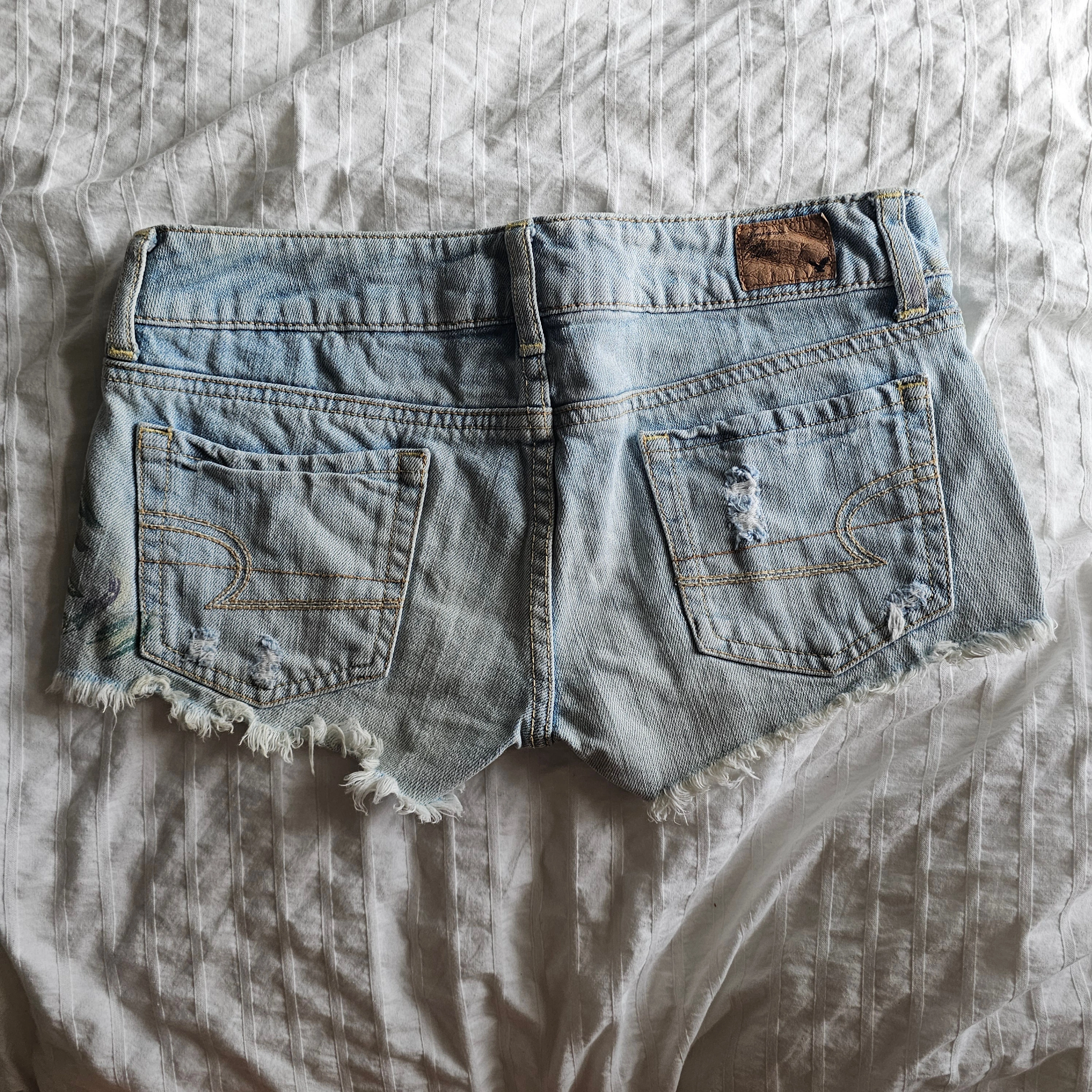 65✨notes : - cash (preferred) / e-transfer / paypal accepted - pick up: Waterloo, ON - shipping: available for additional cost - questions & offers: feel free to dm :) - decluttering my clothes & misc items—check my other listings if you're interested - smoke-free, pet-free environment ⋆。°✩₊ °✦ ‧ ‧ ₊ ˚✧₊ °✦ American Eagle Distressed Painted Jean Short Shorts - 2011 - Light Wash - Sz 00 ✨condition : - worn previously, great condition ✨brand : american eagle ✨colour : light wash ✨size : 00 ✨material : 100% cotton ✨details : - floral painted designed - distressed edges ✨purchase date : 2011 ✨full view + extra images : https://imgur.com/a/Lgvx3NZ ✨full description tbd.