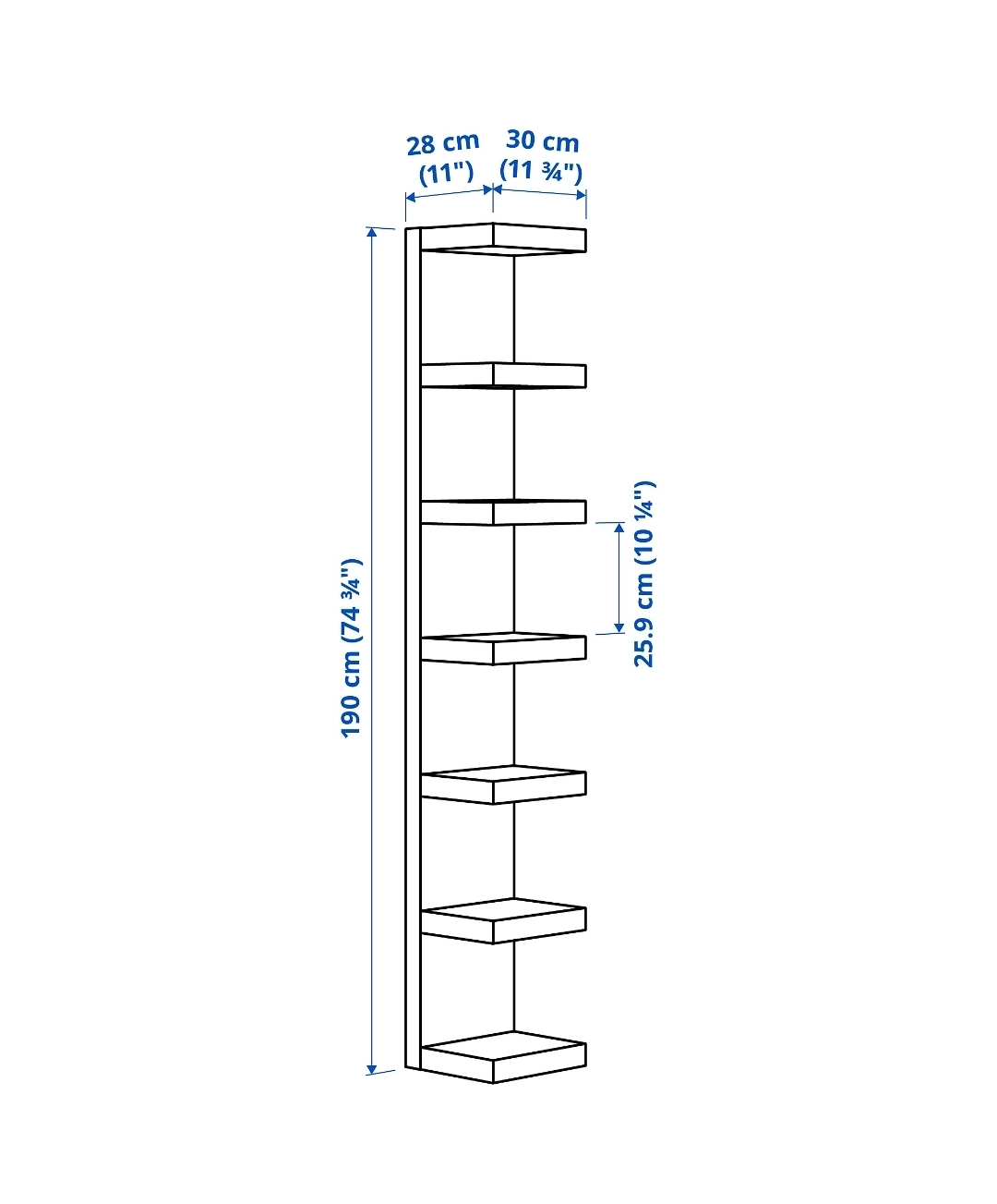 Pick up only. Selling white IKEA Lack shelf unit. It's in good shape and ready to add some storage to your space! can be hung vertically or horizontally. The dimensions are approximately 190 cm (74 3/4") tall, 28 cm (11") wide, and 30 cm (11 3/4") deep.