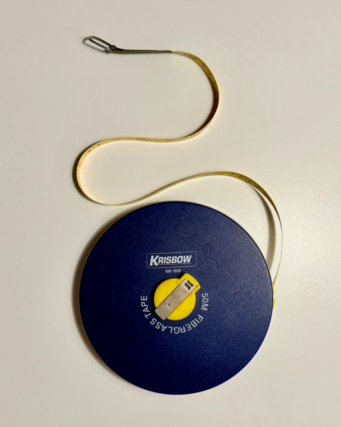 Selling a Krisbow fiberglass tape measure, model KW-1650. It's a 50-meter tape, perfect for various measuring tasks. Great for DIY projects or professional use!