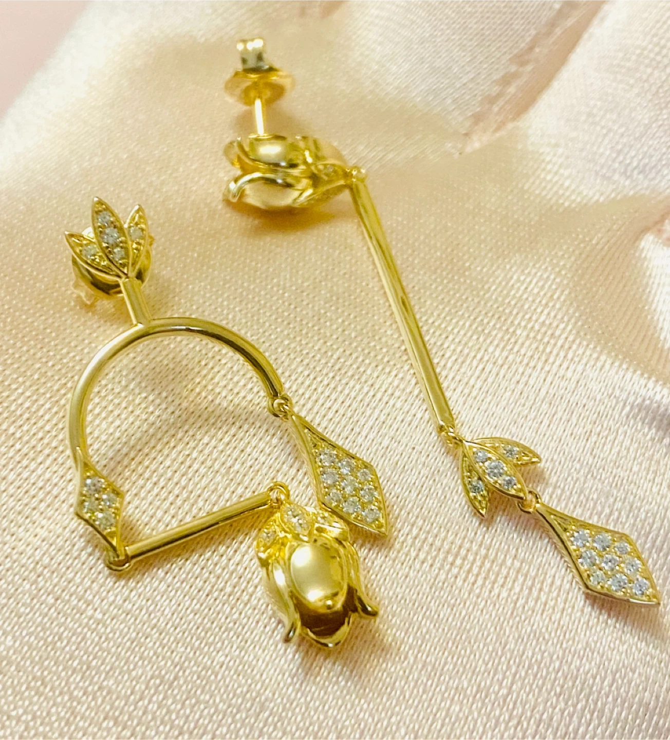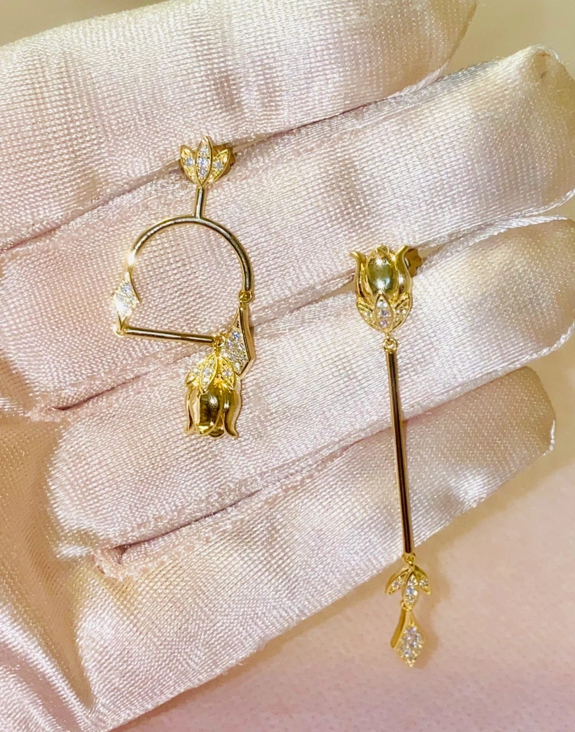 Gold Tone Tulip Dangle 925 Silver Earrings