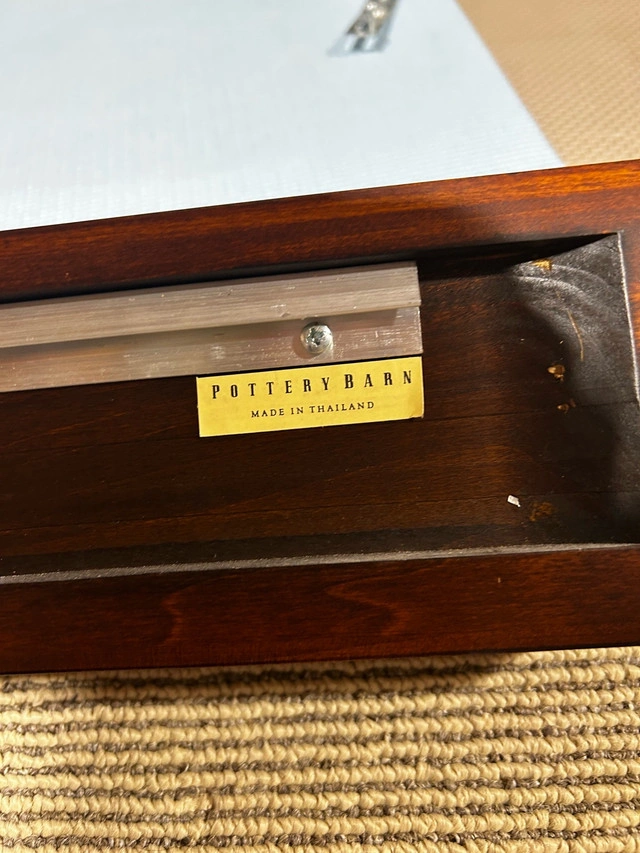 Add a touch of elegance to your space with this Pottery Barn floating shelf. This shelf is previously owned and is in great condition, ready to enhance any room with its classic design and functionality. Perfect for displaying your favorite books, photos, or decorative items, it offers a stylish storage solution. Mounting hardware included * Brand: Pottery Barn * Type: Floating Shelf * Material: Wood * Colour: Brown * Dimensions: 36 inches long Remember, if the ad is up, the shelf is available!