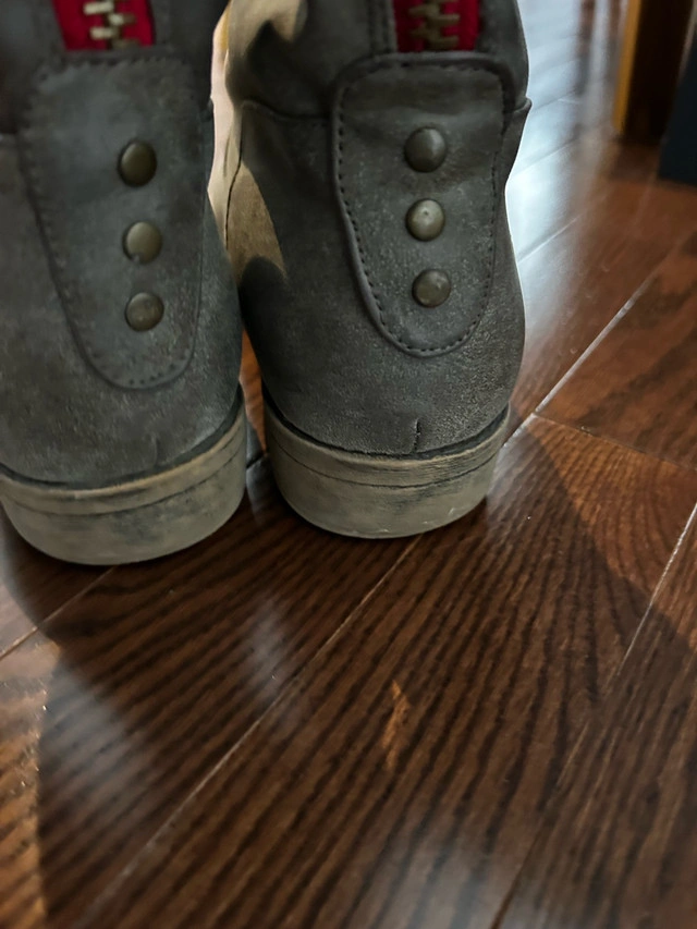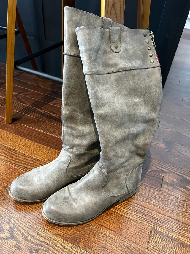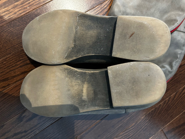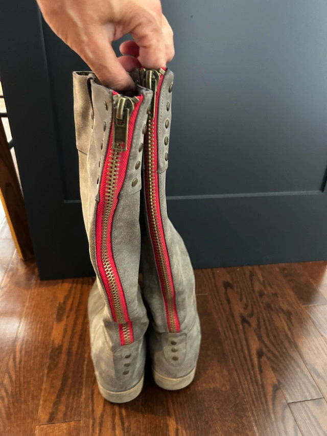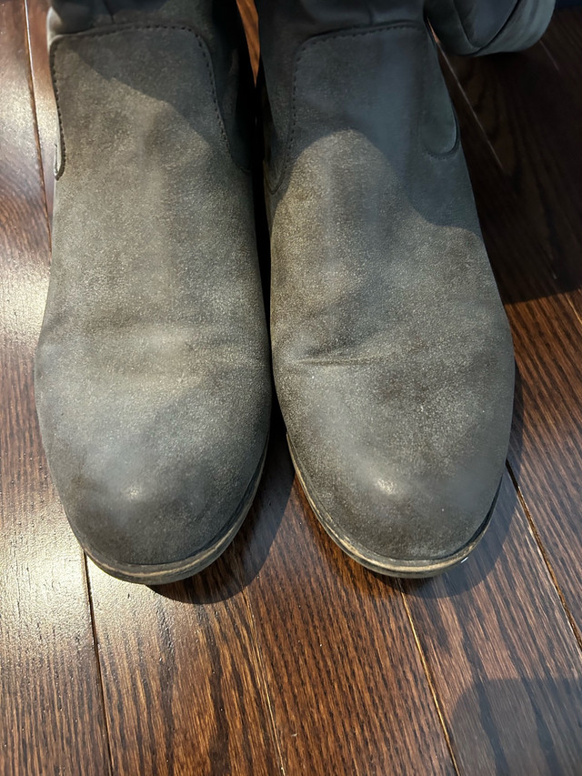 Step out in style with these Sam Edelman grey suede boots, size 9! These boots have been worn and loved, which you can see from the soles and the overall condition of the suede. They have a fashionable zipper detail on the back.