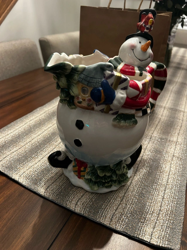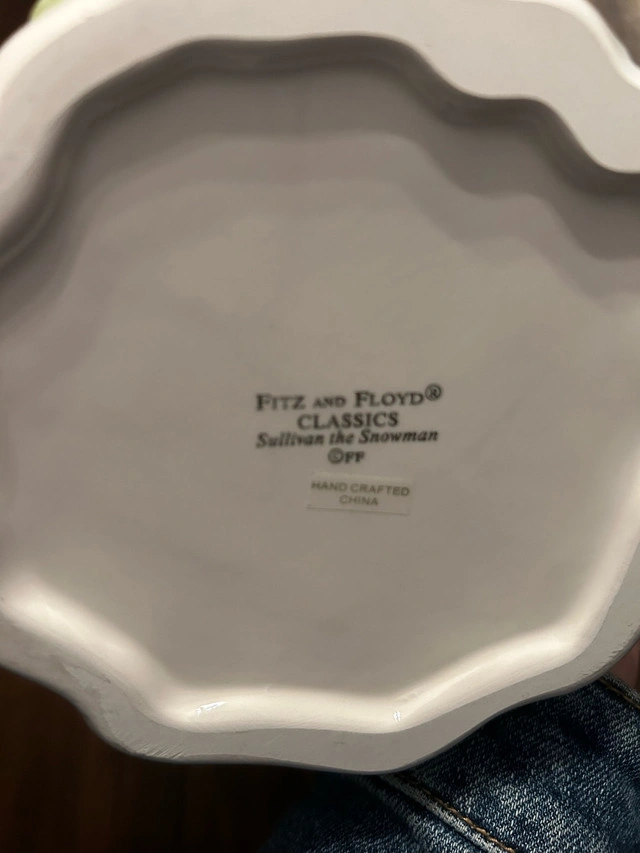 Add a touch of festive charm to your home with this Fitz and Floyd Classics Sullivan the Snowman Pitcher! This delightful, hand-crafted china pitcher features a cheerful snowman design, perfect for serving your favourite beverages during the holiday season or as a whimsical decorative piece. It's in good used condition, ready to bring joy to your kitchen or collection.