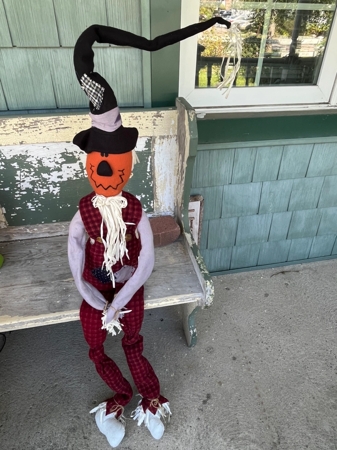 Here's a cute scarecrow decoration for your fall harvest display! It's in great condition and ready to add some charm to your home