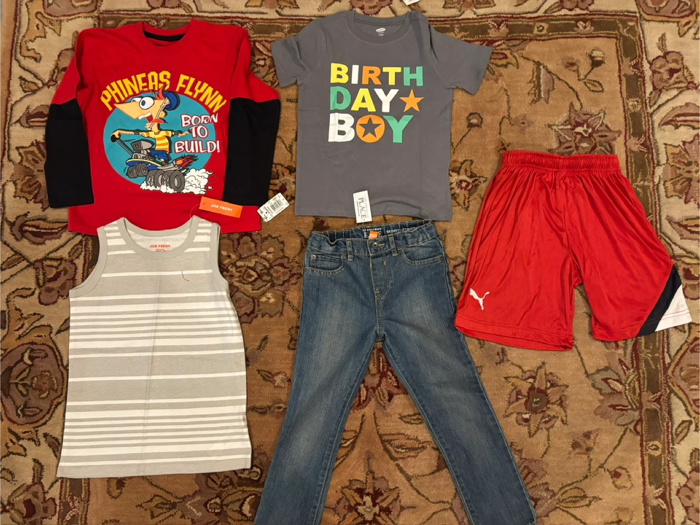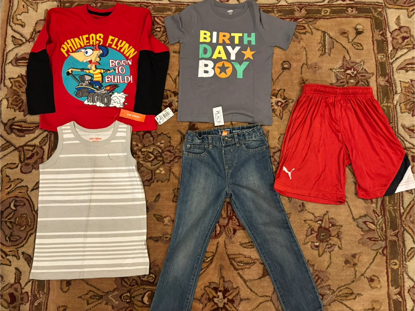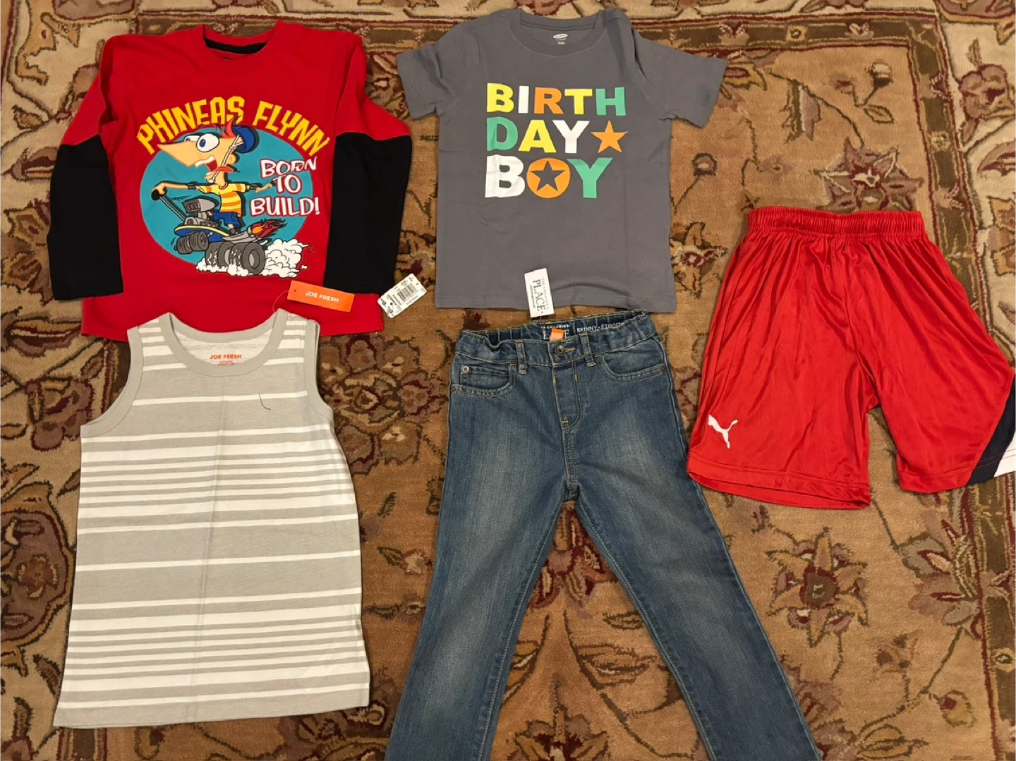 featuring popular brands like Old Navy, Puma, children’s place, Disney, and Joe Fresh! The bundle includes a mix of shirts, jeans, and shorts, perfect for a stylish and comfortable wardrobe upgrade. All items are brand new with tags, ensuring excellent quality and freshness.