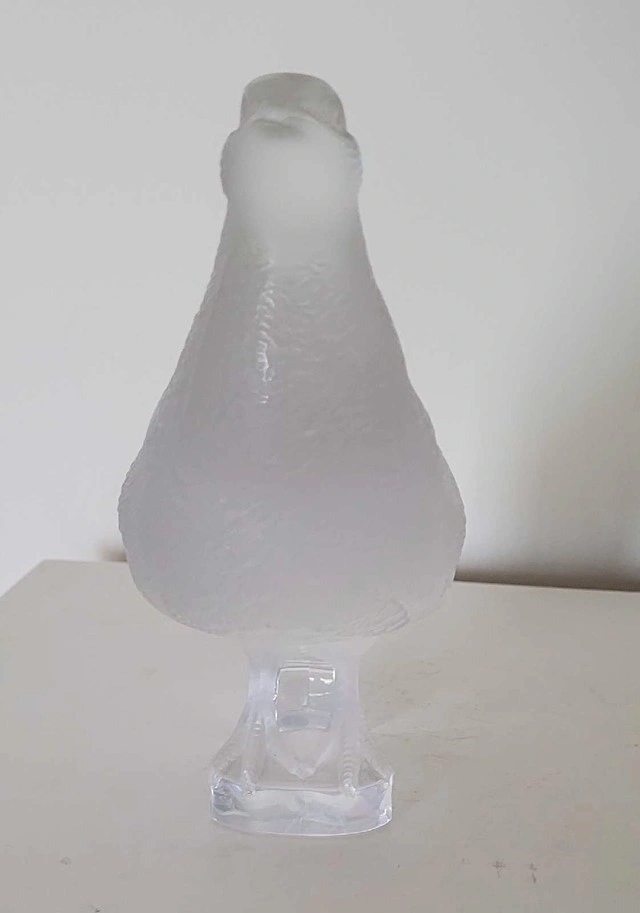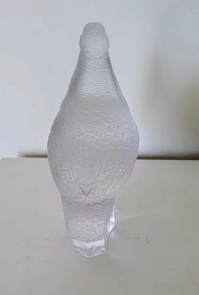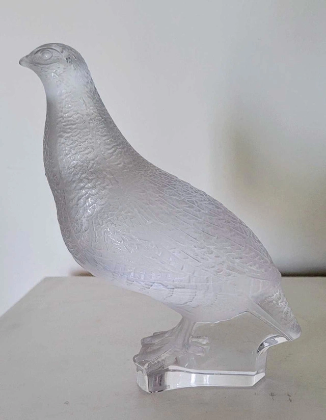 1000+This Lalique crystal partridge figurine is a beautiful piece of art glass, showcasing exquisite detail and craftsmanship. The figurine is in excellent condition. Lalique is renowned for its artistry, and this partridge figurine is a testament to their legacy. This is a pre-owned item that has been well cared for. It's perfect for collectors or as an elegant decorative piece. Just so you know, if the ad is up, it's available!