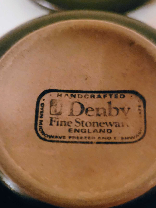 This Denby handcrafted fine stoneware jar is perfect for adding a touch of rustic charm to your kitchen. It's in used-good condition and ready to find a new home! Specifications: * Brand: Denby * Material: Fine Stoneware * Origin: England * Oven, Microwave, Freezer, and Dishwasher safe. If the ad is up, it's still available!