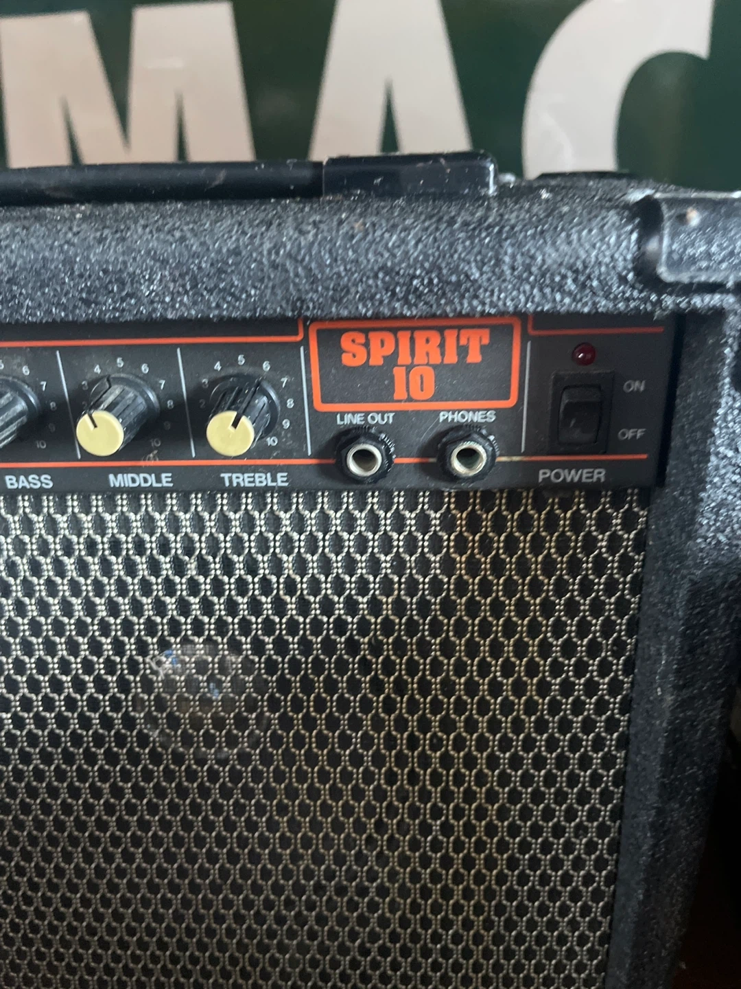 Selling a Roland Spirit 10 guitar amplifier. This amp is perfect for practice or small gigs. It features controls for bass, middle, and treble, as well as overdrive and master volume.