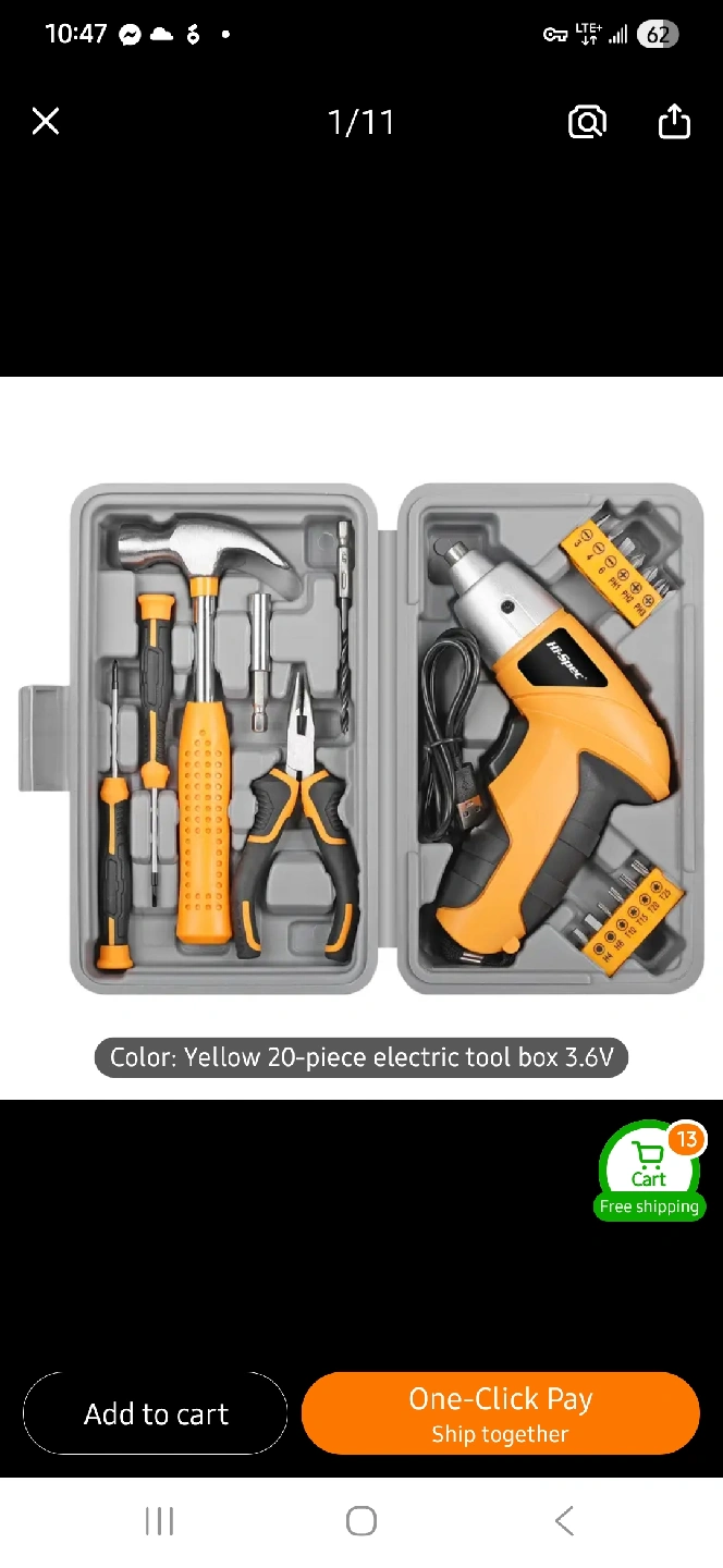 Selling a Hi-Spec 3.6V electric screwdriver tool set in yellow! This 20-piece set is perfect for small jobs around the house. It includes a variety of screwdriver bits, a hammer, pliers and more. The set comes in a compact case for easy storage.