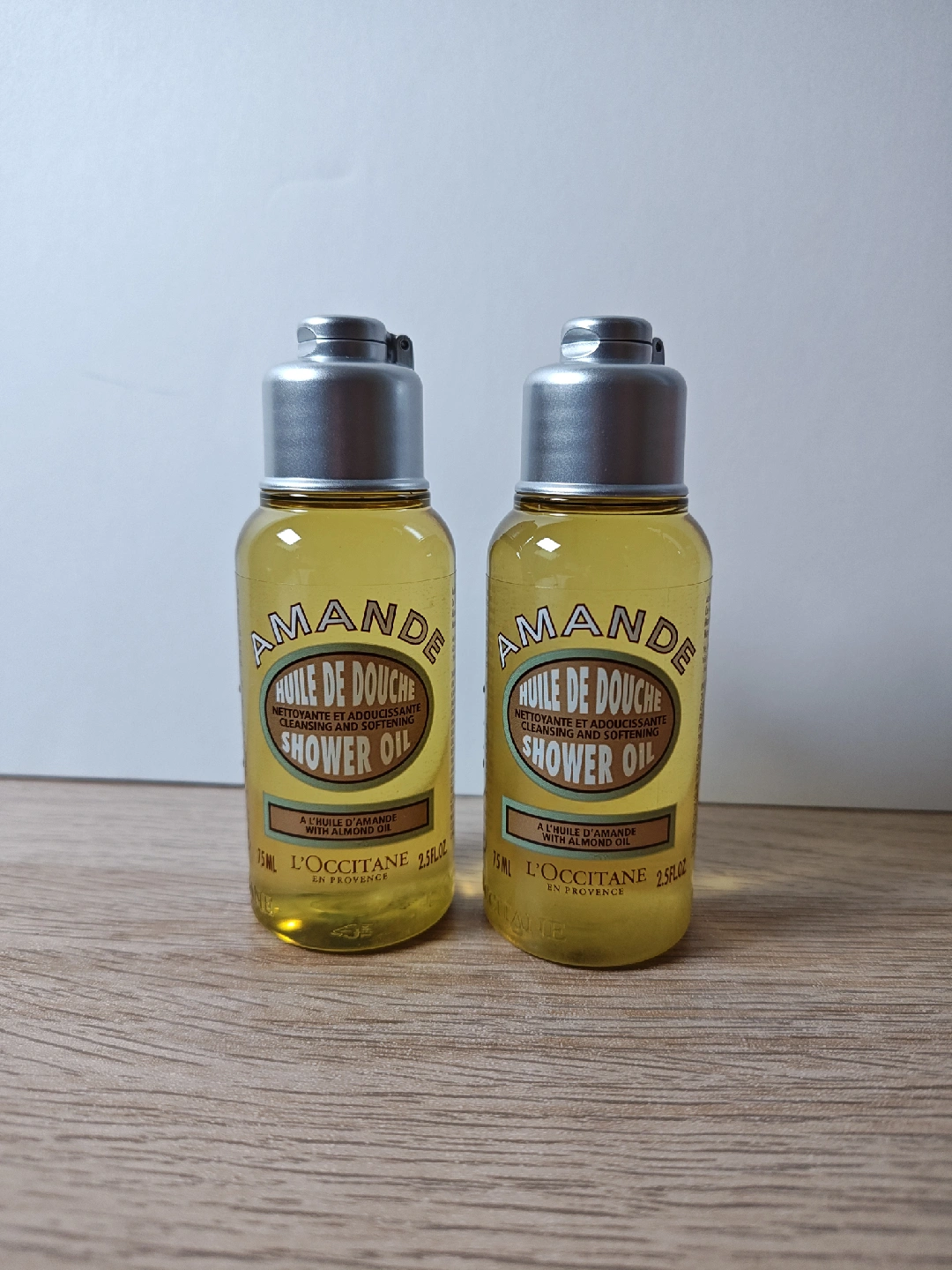 Selling two bottles of L'Occitane Amande Shower Oil! Each bottle contains 75ml of the cleansing and softening shower oil. It's made with almond oil, leaving your skin feeling nourished and smooth after every shower