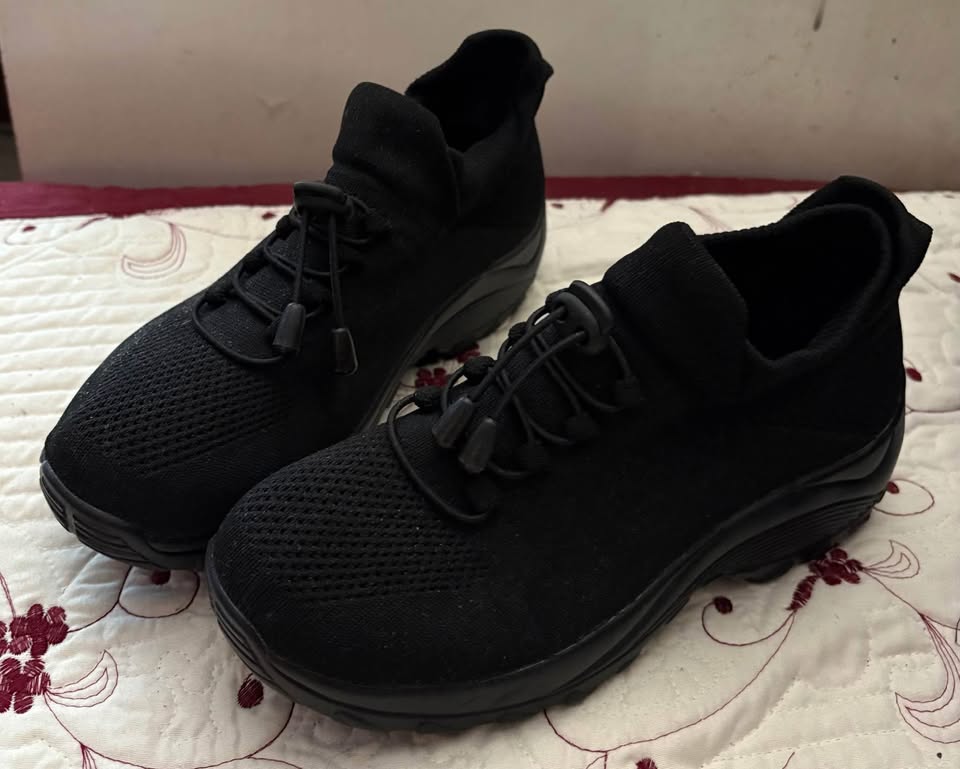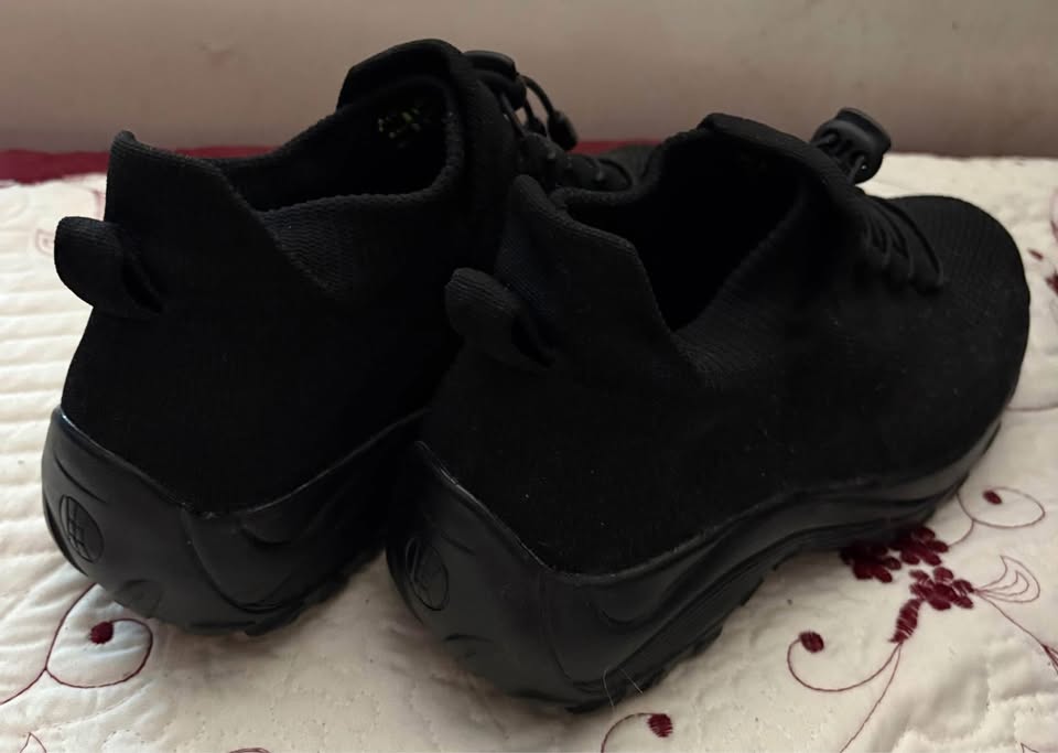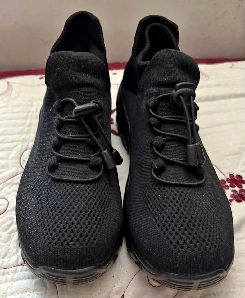 Black air breathing material shoes with upper soft material ankle extension worn twice, but too tight for my feet size 38.5
