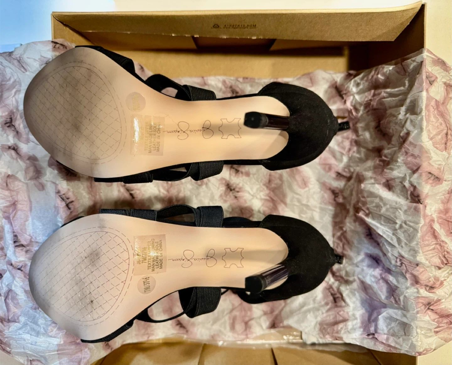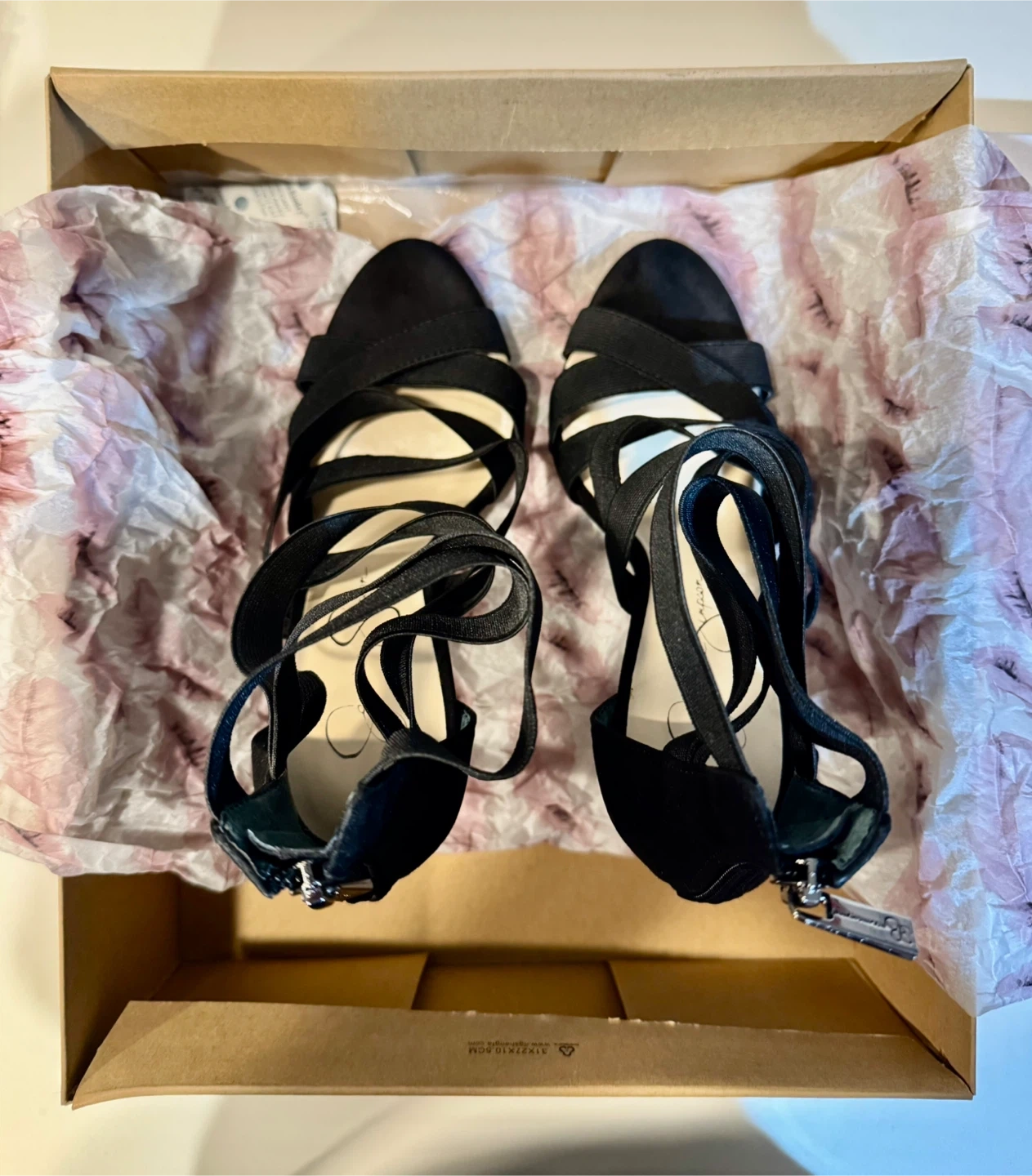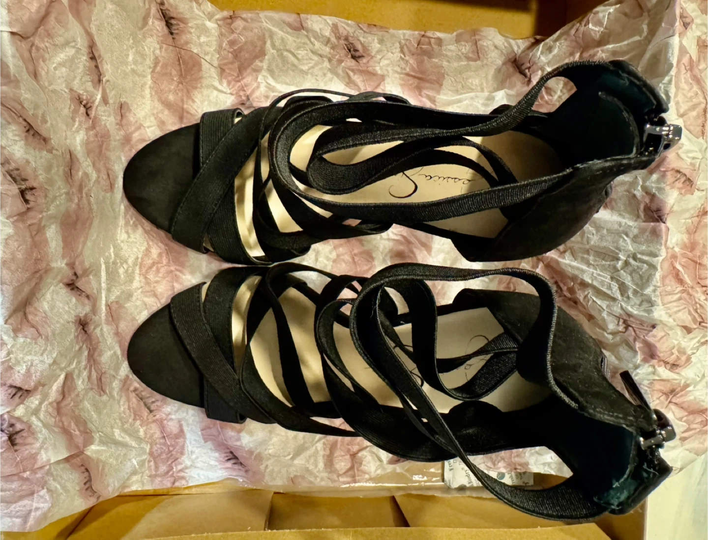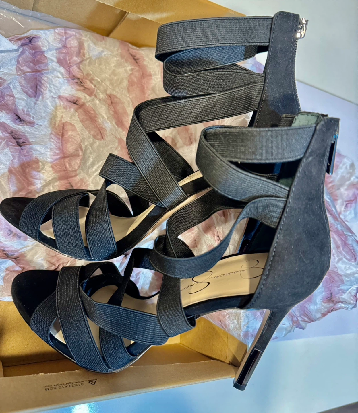 44π Jessica Simpson Elegant Black Strappy Heels_Size 7.5 M π Selling a pair of Jessica Simpson black heels in size 7M. These stylish heels come with a zipper at the back and a strappy design. They are in excellent condition and come with the original box. In super good condition. Only worn once (in door only). Retail price : CAD $140.00