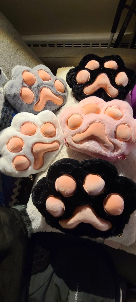 Super cute paw-shaped plush shoulder bags with zipper.!